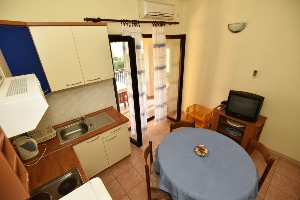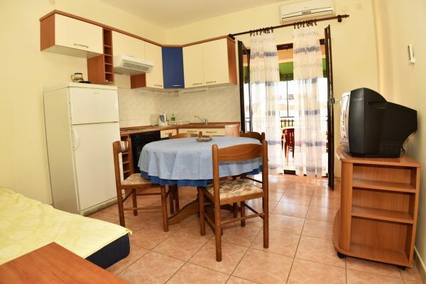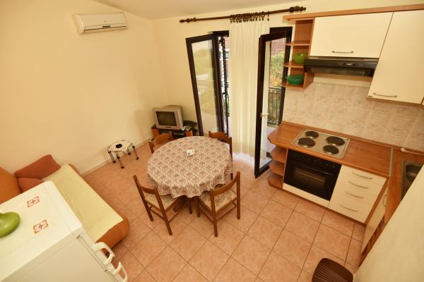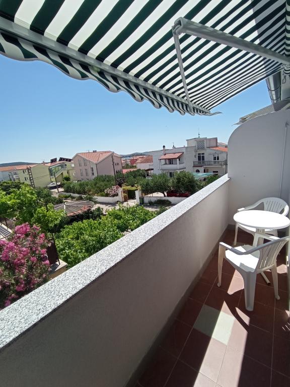 Vodice to piękny apartament z dużym tarasem, 2 pokojami i dodatkowym łóżkiem w kuchni;