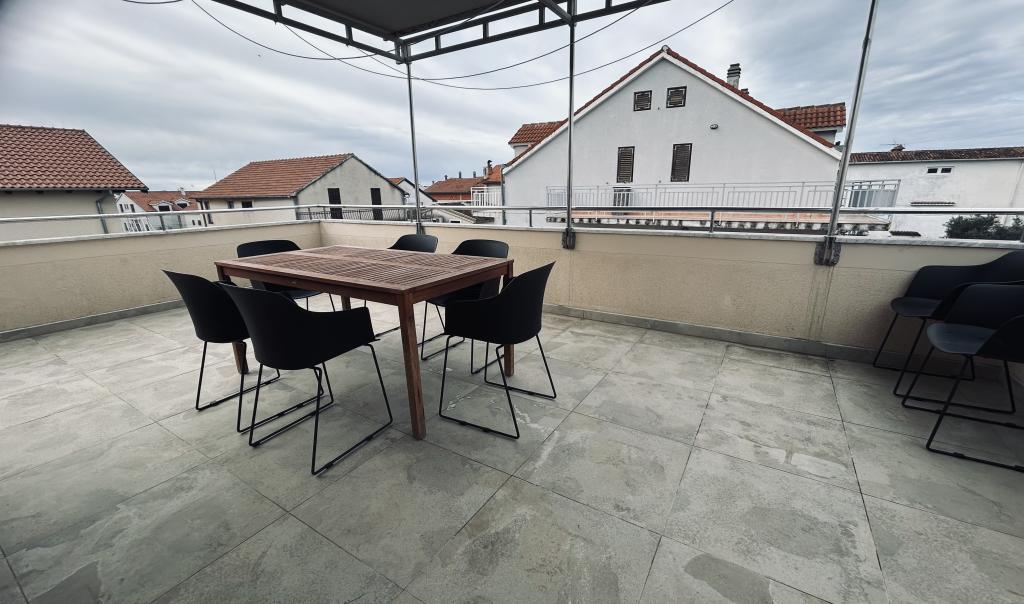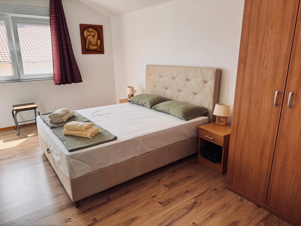 Mieszkanie blisko centrum Vodic, w pobliżu rynku miejskiego i dworca autobusowego, zaledwie kilka minut spacerem. Nowocześnie wyposażone w cichej okolicy. Do plaży spacerkiem spokojnym około 10 minut. Znajduje się pośrodku dwóch popularnych plaż, Blue Beach i Male Vrulje.
