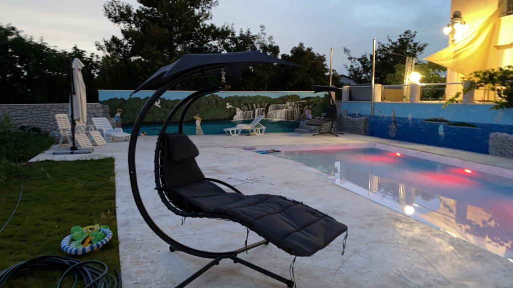 Rozszerzenie powierzchni rekreacyjnej do 1260 m2 na różne zajęcia sportowe. Wraz z nową zawartością, Apartamenty IVAN V otrzymują również słowo RELAX. Nowy basen jest czynny z podgrzewaną wodą słoną, a także jacuzzi dla wszystkich gości. Zaszczepione przeciwko Covid-19. Wysyłamy potwierdzenia płatności rezerwacji. Wszyscy starzy goście mają 10% zniżki na standardową ratę za ten okres, a także goście z Zenicy; zniżka nie łączy się z innymi zniżkami. Każdy apartament ma prawo do korzystania z basenu i jacuzzi na dziedzińcu obiektu. Pojemność obiektu wynosi 18 łóżek. Możliwość zorganizowania transportu na lotnisko w Splicie lub Zadarze (50 km) za dopłatą.