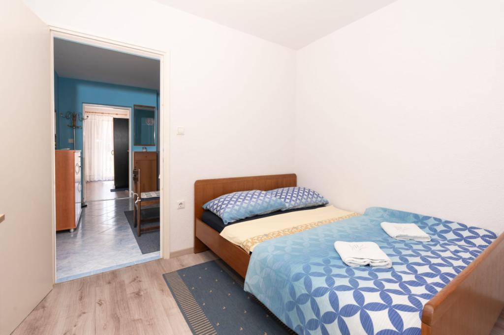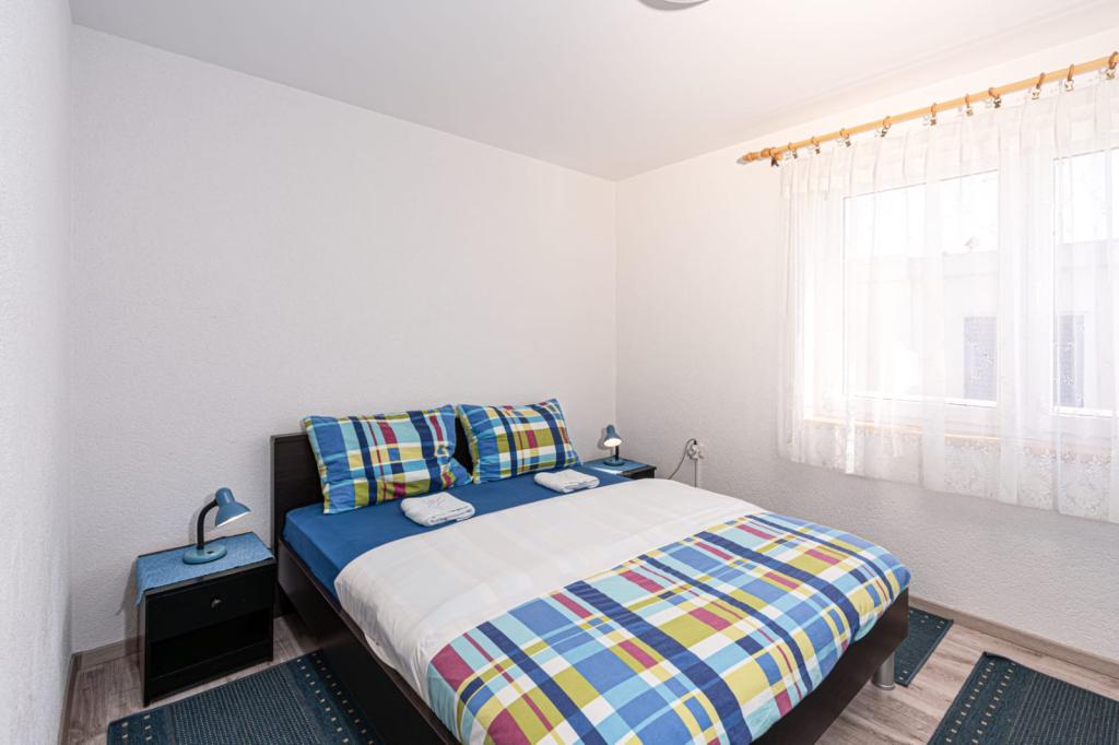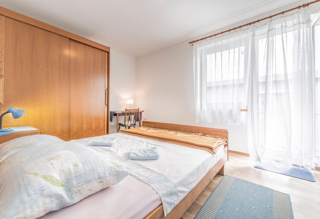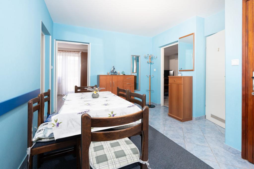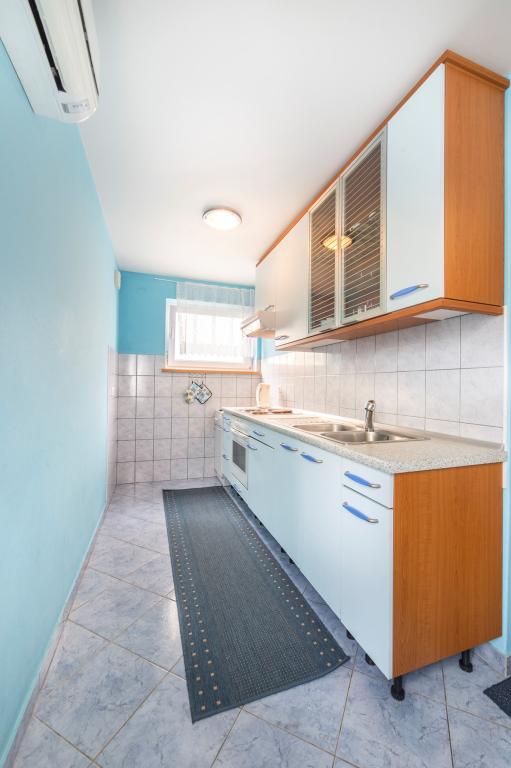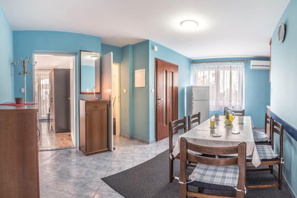 W pełni wyposażone apartamenty z trzema sypialniami o powierzchni 90 m² z widokiem na morze są odpowiednie dla 4–6 osób. Do dyspozycji gości jest duży, zadaszony parking na maksymalnie 4 samochody, a także grill i rożen na tarasie na dziedzińcu. Apartamenty znajdują się 500 m od centrum miasta, a do plaży można dojść w 5–10 minut (ok. 400 m). Cena apartamentów obejmuje internet Wi-Fi, klimatyzację, zadaszony parking, możliwość korzystania z grilla oraz opłatę klimatyczną. Apartamenty przeznaczone są przede wszystkim dla rodzin. Prosimy wszystkich zainteresowanych o sprawdzenie sekcji „Dostępność” i „Cennik” przed wysłaniem zapytania. Rezerwacja telefoniczna nie jest możliwa. Dziękujemy za zrozumienie.