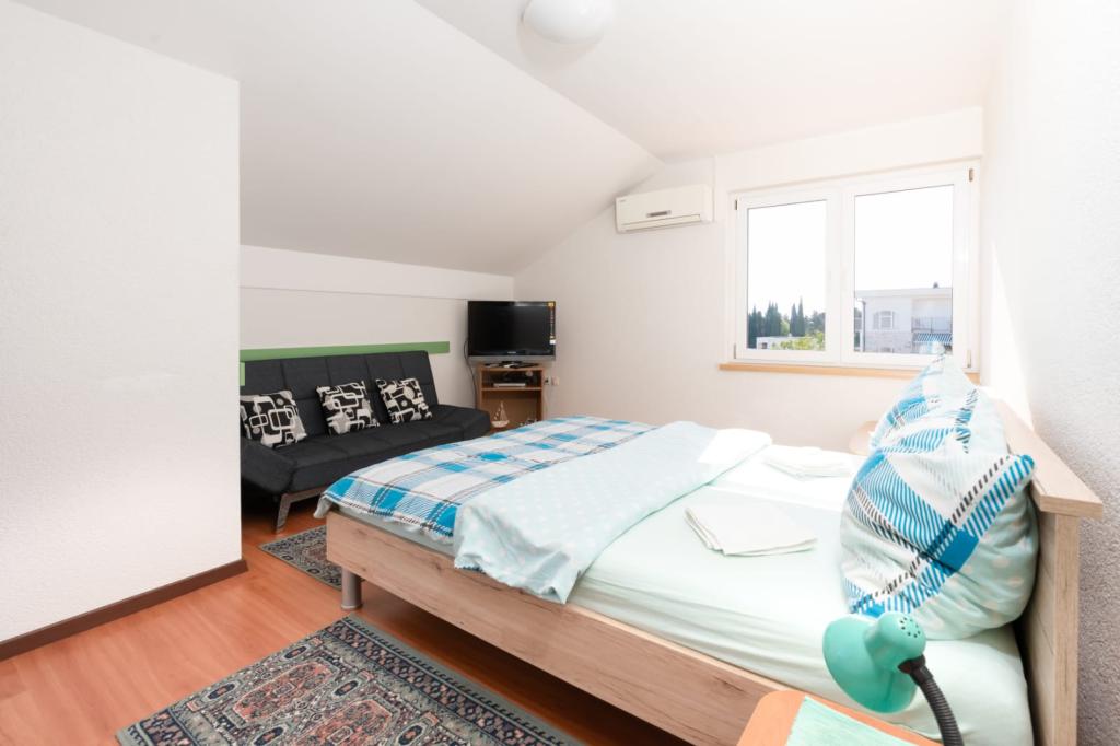 Bardzo duży i wygodny apartament A6, z trzema klimatyzacjami, dobrze działającym Wi-Fi i dużym tarasem. Przestronne i zadaszone miejsce do parkowania samochodu. Miejsce ciche i spokojne, nie słychać odgłosów z centrum miasta do którego jest okolo 10 min spacerkiem. Polecamy plażę Bristak, nową i zdecydowanie mniej zatłoczoną, też około 10 min spacerkiem. Blisko sklep z podstawowymi artykułami spożywczymi, chemicznymi i nie tylko. Bardzo gościnni, mili i sympatyczni gospodarze, chętni do pomocy i do rozmowy. Mato i Agnieszka, dziękujemy za miło spędzony czas!