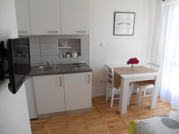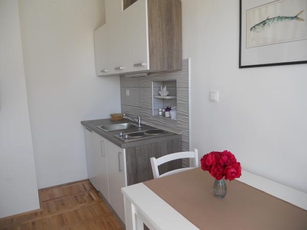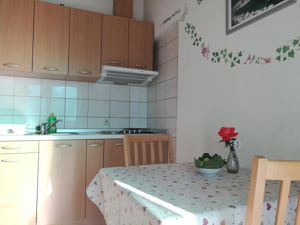 Dom położony jest w spokojnej okolicy, pierwszym rzędzie do morza i składa się z 4 apartamentów. Ma piękny widok na morze, a plaża z zaroślami i betonowymi sekcjami jest idealna dla dzieci. Plaża ma wiele udogodnień, dzięki czemu można korzystać z skuterów wodnych, rowerów wodnych, parku wodnego, tenisa stołowego, trampoliny i wielu innych atrakcji. Jeśli chcesz odpocząć od wszelkich zajęć, opalania się i pływania, możesz udać się na wakacje do pobliskich kawiarni i restauracji, gdzie możesz cieszyć się orzeźwiającymi napojami i dalmatyńskimi specjałami.