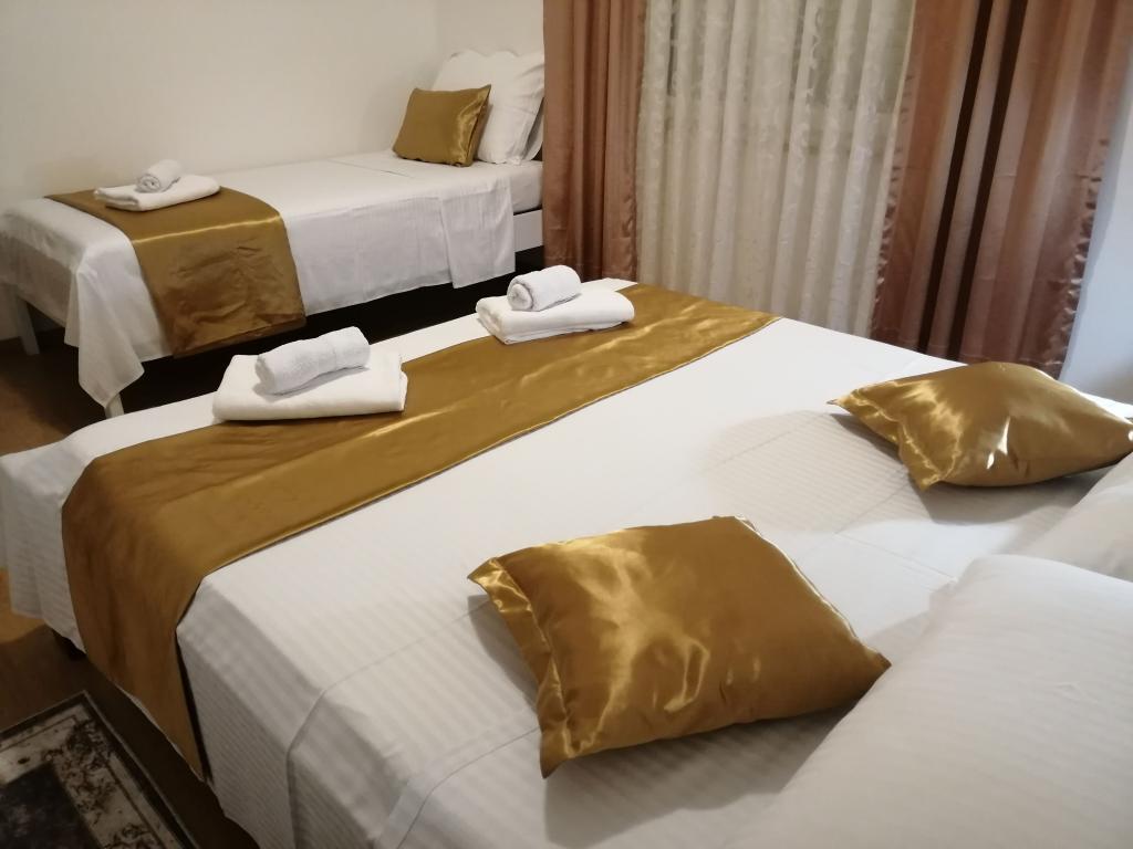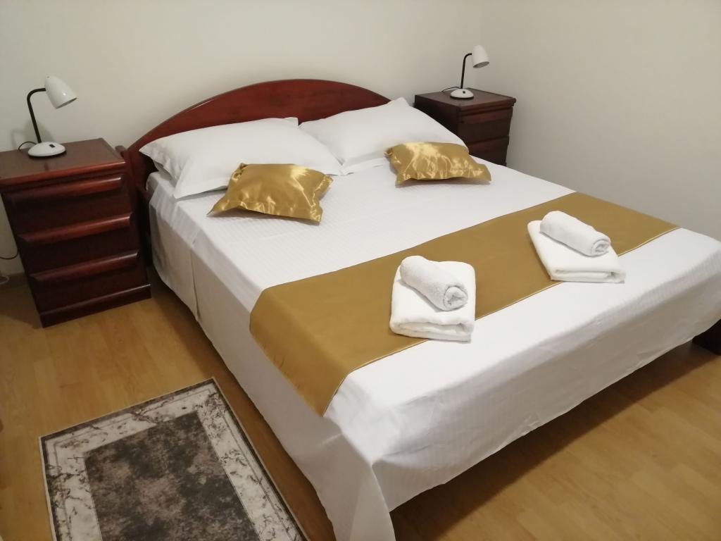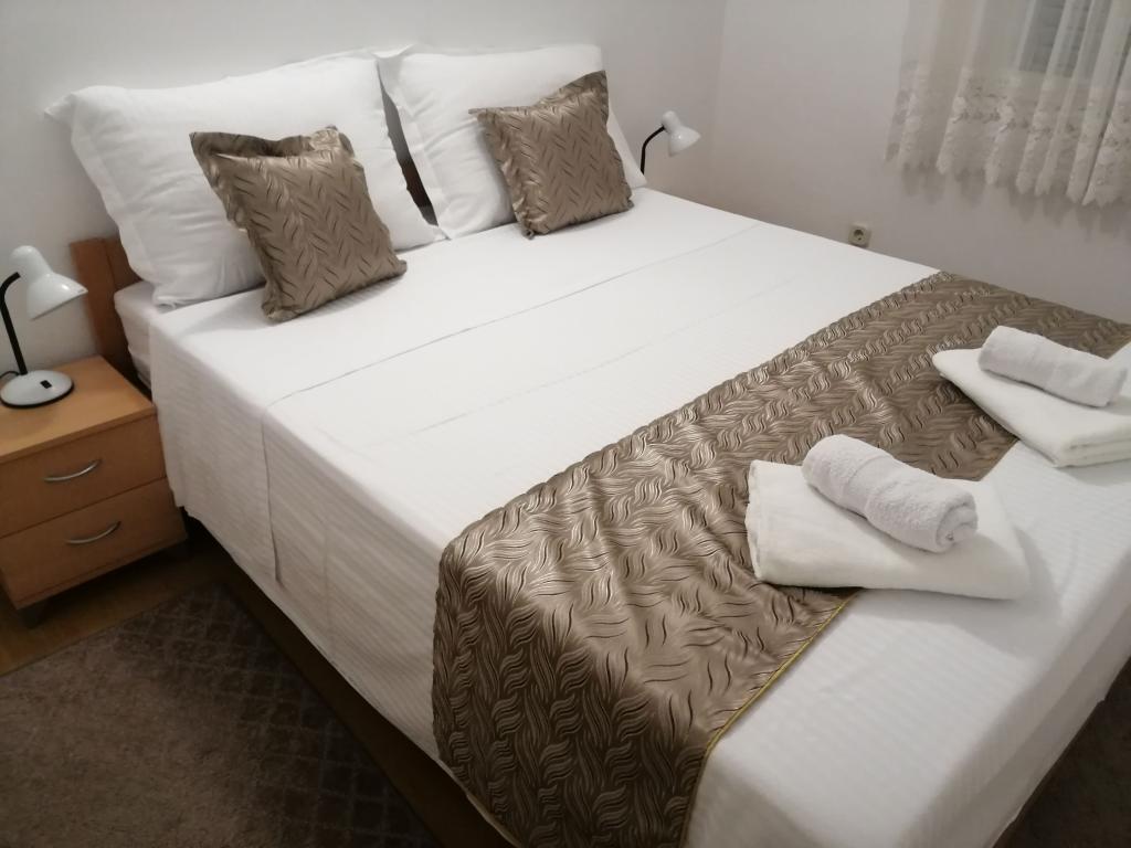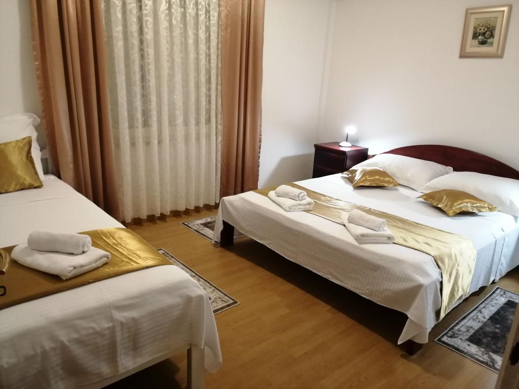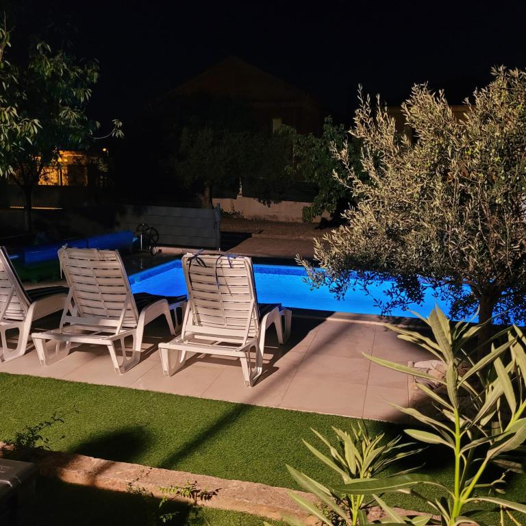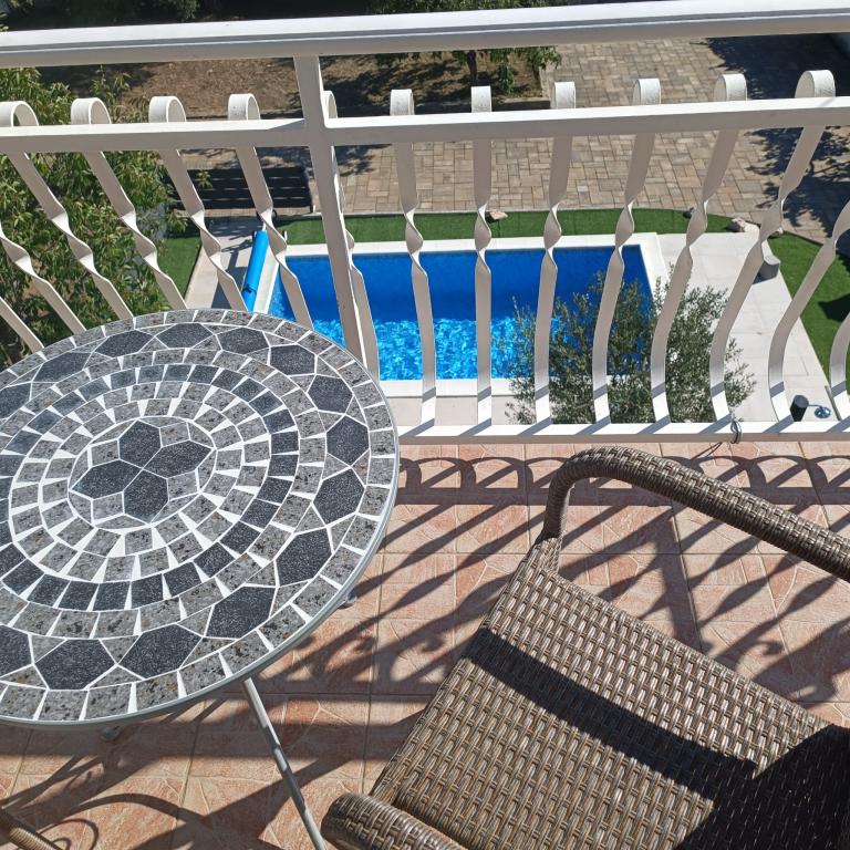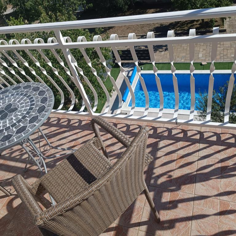 Nowo wyremontowane duże apartamenty z zewnętrznym BASENEM TYLKO DLA CIEBIE!! JAK DOM WAKACYJNY!! Całkowicie NOWO WYREMONTOWANA kuchnia z nowymi urządzeniami (lodówka, zamrażarka, piekarnik, płyta grzewcza, kuchenka mikrofalowa, czajnik, zmywarka, pralka, okap). Naczynia i przybory kuchenne. Salon z narożną sofą, którą w razie potrzeby można rozłożyć na przestronne łóżko. Nowy telewizor z kanałami satelitarnymi. Sypialnie z przestronnymi łóżkami podwójnymi. Pościel. Wszystkie pokoje są klimatyzowane. Dwie łazienki z toaletą i kabinami prysznicowymi, nowo wyremontowane. Pralka, sprzęt do prasowania, suszarka do włosów. Odkurzacz i środki czyszczące, papier toaletowy, mydło, ręczniki. Do dyspozycji Gości jest również taras o powierzchni 30 m2 z meblami ogrodowymi, a także grill, leżaki przy basenie. Ogromny ogród o powierzchni 1300 m2 z mnóstwem śródziemnomorskich drzew. Parking na podwórku BEZPŁATNY!!. Lotniska w Zadarze i Splicie oddalone są o około 60 km. Blisko parków narodowych Krka i Kornati