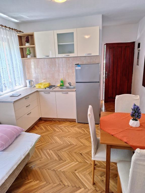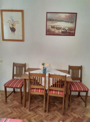 Bardzo sympatyczni i otwarci gospodarze. Domowe wino i brandy figowa na powitanie. Mieszkanie jest bardzo czyste i schludne, z ładnym tarasem z przodu, otoczone zielenią i zimnem. Blisko plaży i promenady. Cała chwała!