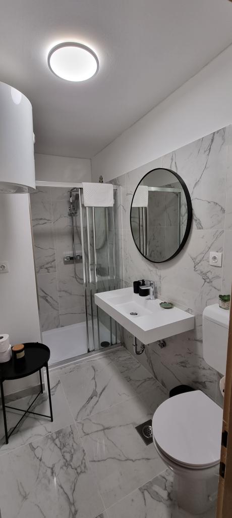 Mieszkaliśmy na parterze w przestronnym mieszkaniu z dużym tarasem, który dawał nam prywatność i relaks w cieniu. Mieszkanie jest dostępne przez ogród z grillem i siedzenia. Pokoje w mieszkaniu są czyste. W mieszkaniu było dużo środków dezynfekujących. W przedpokoju i salonie nowe, nowoczesne meble. Morze na plażę (żwir, piasek) to dosłownie skok z mieszkania. Z leżaka biegniesz do mieszkania po schłodzonego melona, cieszyć się nim nad morzem. Znajduje się tam również doskonała restauracja grillowa. Mieszkanie znajduje się w kamienicy w cichej, spokojnej okolicy. Piękna promenada nad morzem prowadzi do centrum miasta lub szybkiego skrótu przez miasto. Pamiętaj, aby wypożyczyć rower i odwiedzić pobliską wioskę Tribunj. Kamienne domy, wąskie uliczki. Po drodze lub z powrotem do mieszkania udacie się razem z gajami figowymi - dobry smak. Jeśli chcesz wybrać się na wycieczkę do Sibenika, koniecznie skorzystaj z lokalnej Jadrolinii. Zabierze Cię tam legendarny statek transportowy Tijat, a także odkryjesz piękno okolicznych wysp. Właściciel apartamentów Milan to miły i opiekuńczy gospodarz.