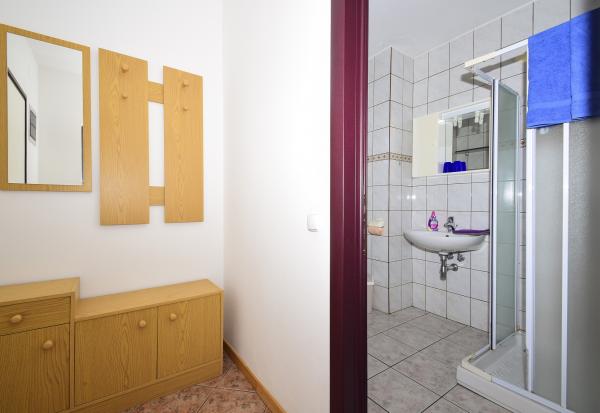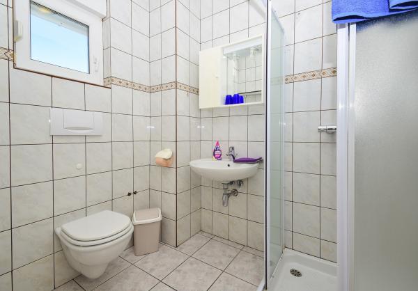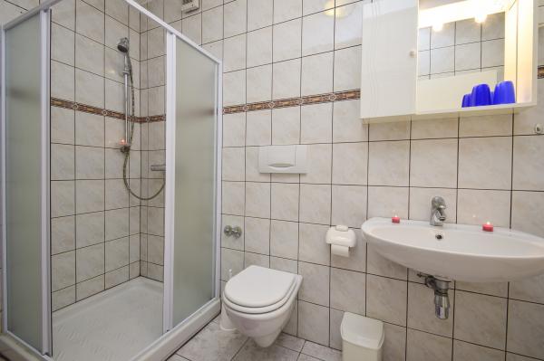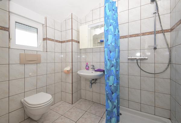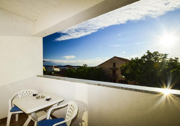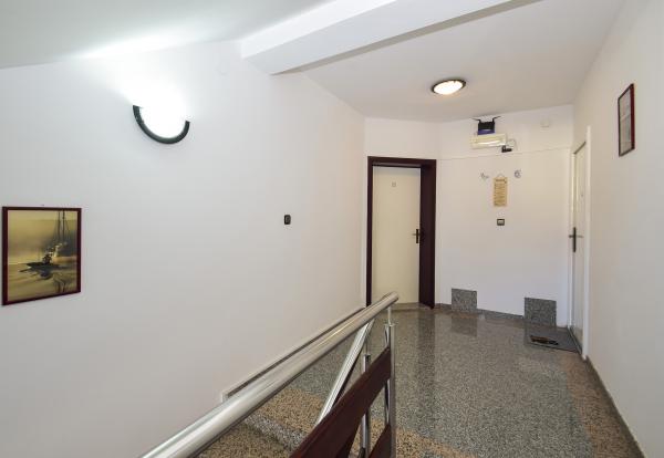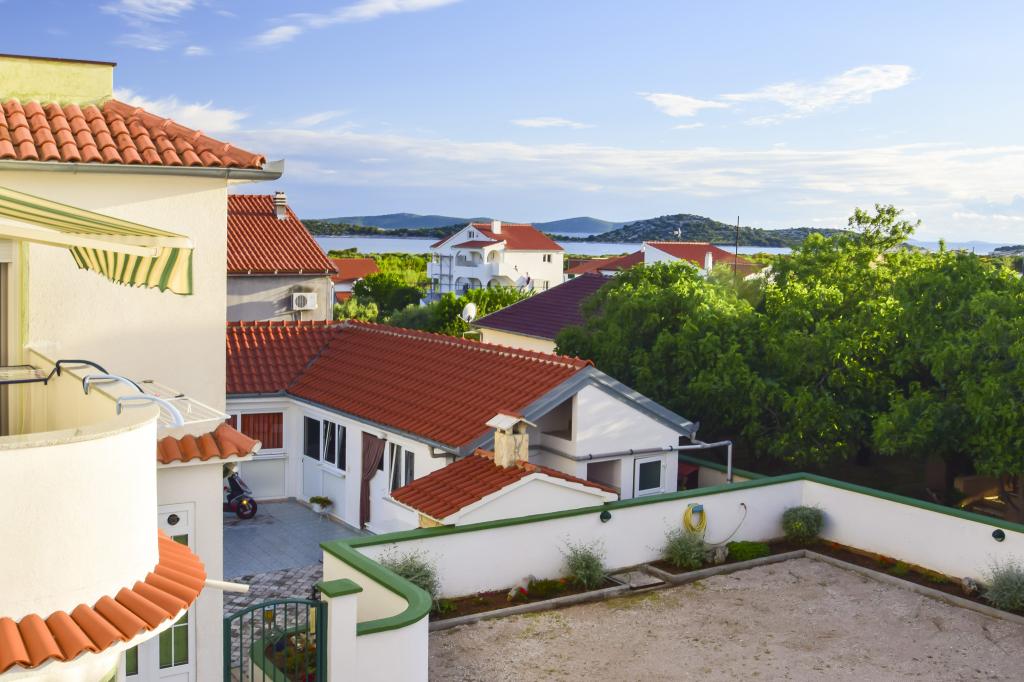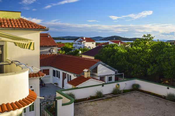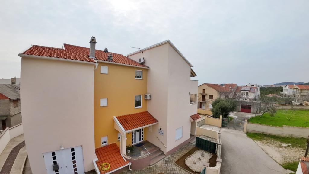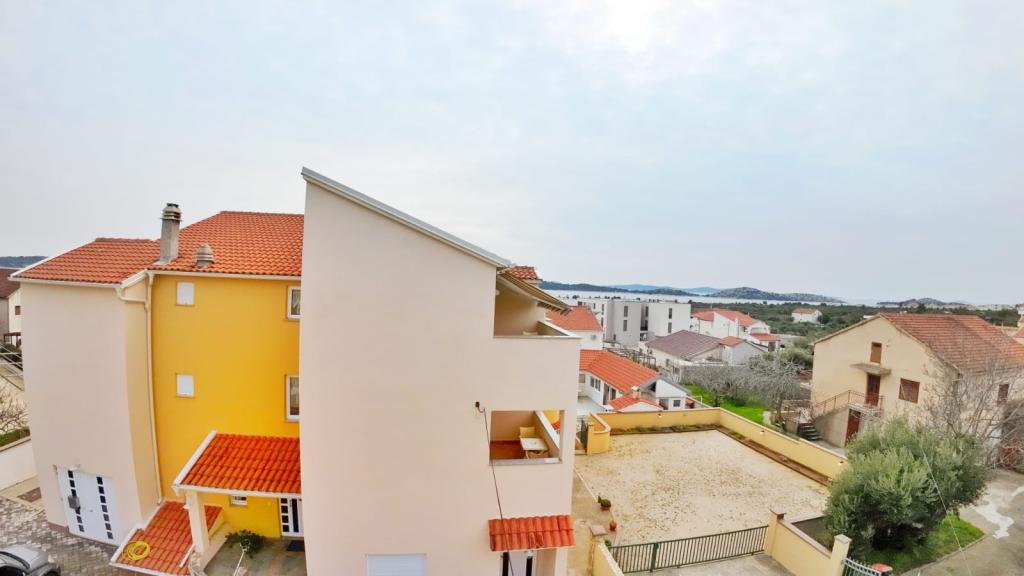 Villa Sanja to nowoczesny budynek, położony w jednej z najlepszych lokalizacji w Vodicach, 350 metrów od plaży, składający się z 7 apartamentów z balkonem lub tarasem. Wszystkie siedem apartamentów posiada piękny widok na morze. W każdym apartamencie istnieje możliwość wstawienia dodatkowego łóżka. Apartamenty są nowocześnie urządzone i niezwykle przestronne. 5 Apartament dla dwóch osób ma powierzchnię 38 m² - składa się z sypialni, salonu z kuchnią i trzyosobową sofą oraz balkonu. 2 apartamenty dla 2 osób o powierzchni 50 m² z salonem, kuchnią, sypialnią, łazienką i dużym balkonem lub tarasem. Jeden apartament, całe piętro dla 8-10 osób: • cztery duże sypialnie dwuosobowe, w tym dwie z trzecim łóżkiem • cztery łazienki z toaletami, duża kuchnia, pokój wspólny. • Parking na terenie posesji lub w domu • około 15 minut spacerem do centrum Vodic • około 5 minut spacerem do plaży Ten dom rodzinny znajduje się około 350 metrów od plaży. Parkowanie na terenie obiektu lub przy domu.