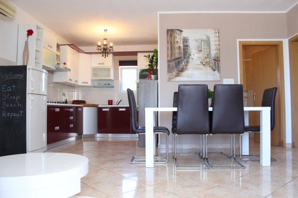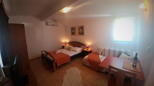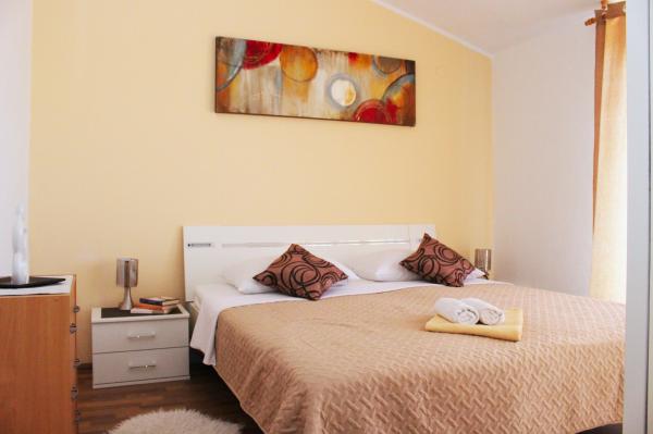 Widok na Morzu Adriatyckim, Apartamenty Mario jest w spokojnej okolicy zaledwie 6 minut spacerem od Starego Miasta Vodice i najbliższej plaży. Oferuje on bezpłatny bezprzewodowy dostęp do Internetu oraz klimatyzowane apartamenty z balkonem lub tarasem i telewizorem. Apartamenty Mario ma grilla dostępne dla gości. Jest kuchnia wyposażona w nowoczesne urządzenia. Łazienkę z prysznicem i suszarką do włosów. Różne restauracje, bary i sklepy znajdują się w bezpośrednim sąsiedztwie. Zabytkowe centrum jest pełne zabytków, takich jak Kościół Świętego Krzyża Coric wieży, sanktuarium Matki Bożej z Karmelu. Najbardziej popularna plaża o nazwie Blue Beach, wynosi 700 m. Najbliższy przystanek autobusowy znajduje się 200 metrów od hotelu.