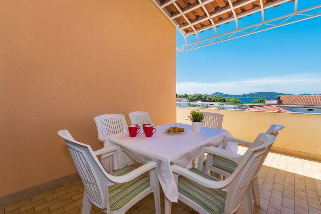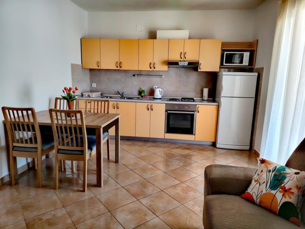 Apartamenty Marko znajdują się przy ulicy Blata, w spokojnej części miasta Vodice, niedaleko hotelu Punta. Główna plaża Plava Plaža oddalona jest od apartamentu o 100 metrów, a centrum miasta o 300 metrów. Oferujemy 3 apartamenty: apartament Ap 4+2, apartament Ap 4+1 i apartament Ap 2. Apartament 4+2 składa się z 2 sypialni z łóżkiem małżeńskim, łazienki, salonu z rozkładaną sofą, kuchni i tarasu. Apartament 4+1 składa się z 2 sypialni z łóżkiem małżeńskim, salonu z rozkładaną sofą, kuchni, łazienki i tarasu. Apartament Ap 2 składa się z 1 sypialni z łóżkiem małżeńskim, łazienki, kuchni z jadalnią, salonu z rozkładaną sofą i balkonu ze stołem dla dwóch osób. Każdy apartament wyposażony jest w pralkę i klimatyzację. Parking znajduje się na dziedzińcu naszego obiektu. Goście mogą korzystać z grilla. Cena za osobę powyżej 4 osób wynosi 20,00 EUR / dzień. Zapraszamy!