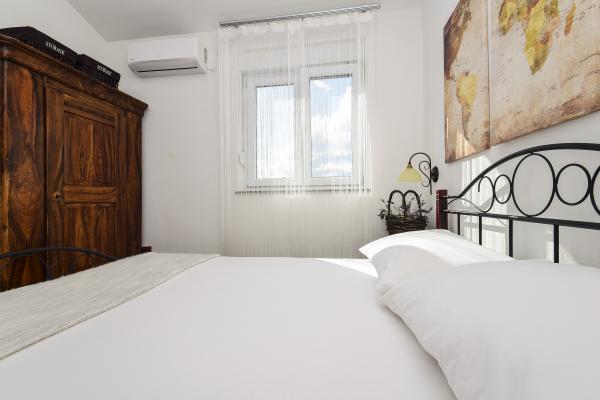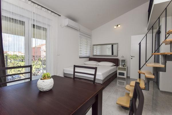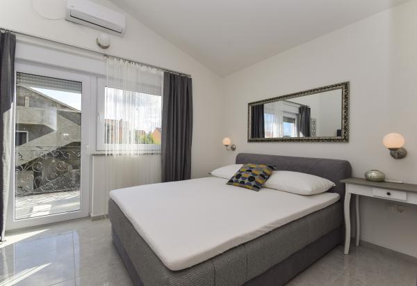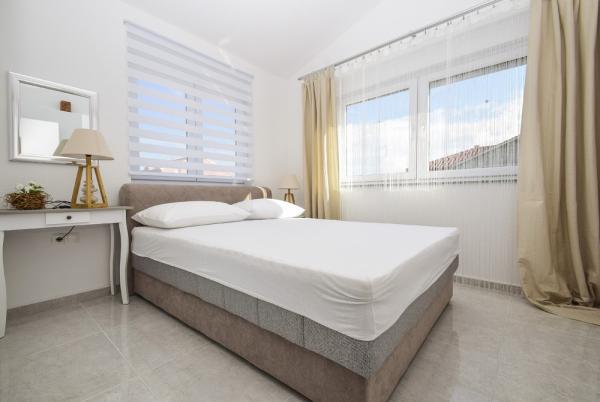 Piękne klimatyzowane apartamenty, nowo wyposażone współczesnych standardów, który spełni i najzahtjenije, higiena samo bez zarzutu. Apartamenty położone są w cichej ulicy, z dużym tarasem i pięknym basenie. Niedaleko plaży, w lesie sosnowym, z dużą ilością do zrobienia dla dzieci i dorosłych, a także hoteli i sklepów. Centrum miasta i jeden z najpiękniejszych przystani na wybrzeżu Adriatyku jest łatwy spacer wzdłuż plaży, 5 minut.