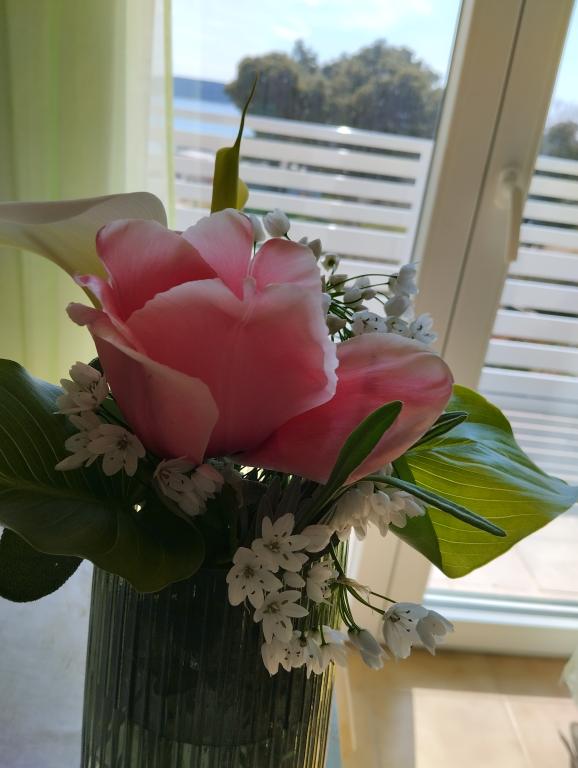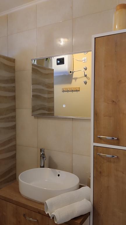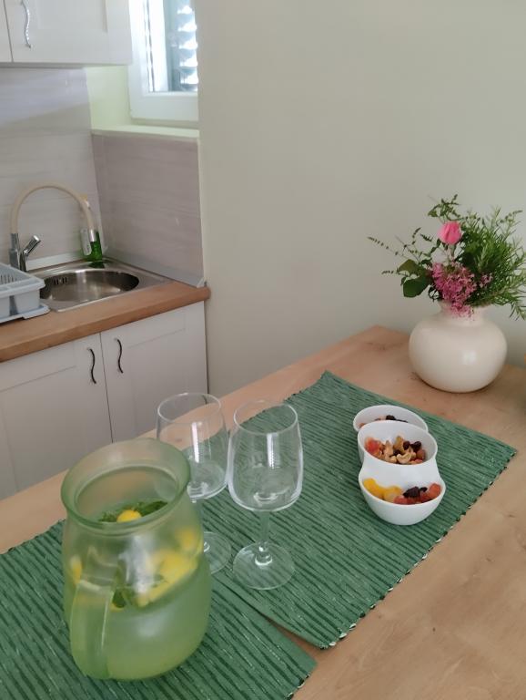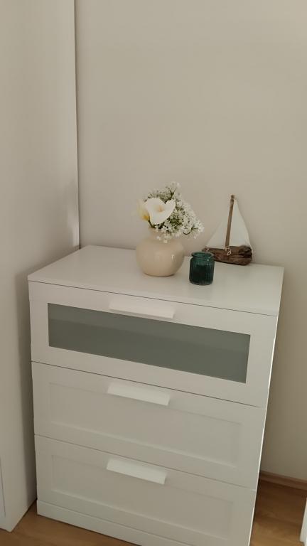 Dwa apartamenty na drugim piętrze domu rodzinnego tuż przy Blue Beach. Apartament dwupokojowy został niedawno odnowiony, a apartament jednopokojowy został udekorowany dopiero w zeszłym roku. Plaża znajduje się około 70 metrów od domu, a centrum miasta jest oddalone o 600 metrów. Na plaży znajdują się liczne obiekty gastronomiczne i udogodnienia dla dzieci, a także specjalnie przygotowana plaża dla dzieci. Plaża przed domem jest piaszczysta, a nieco dalej, około 20 metrów, jest kamienista. Wejście do mieszkania. możliwy wyjazd po godz. 12.00 do godz. 10.00.