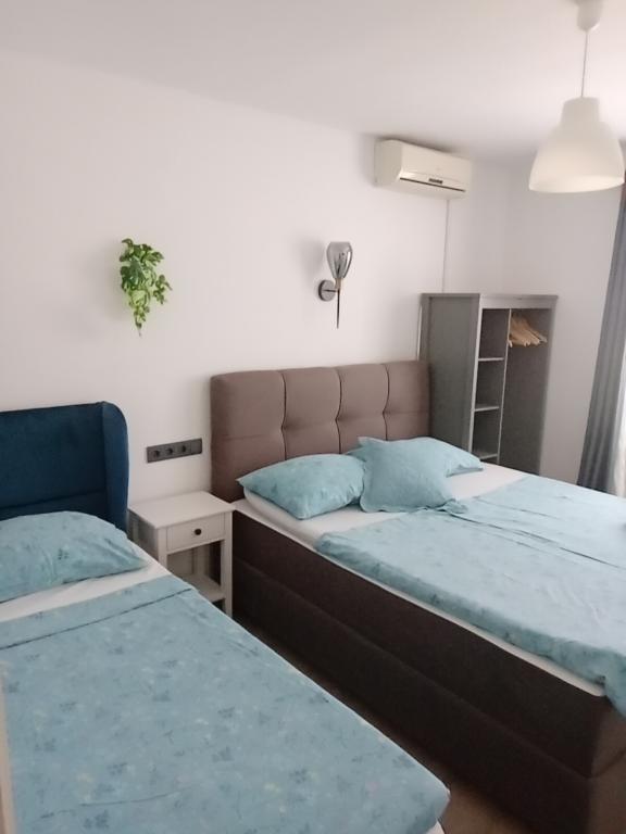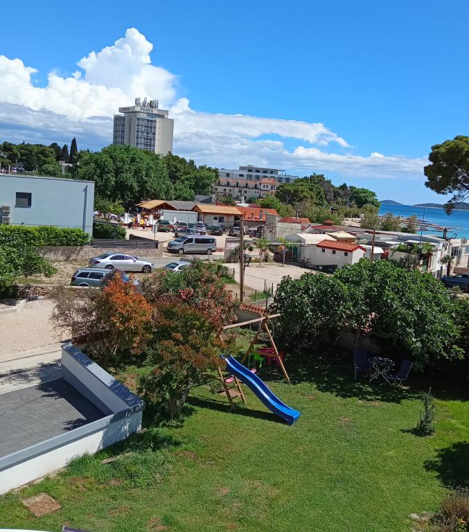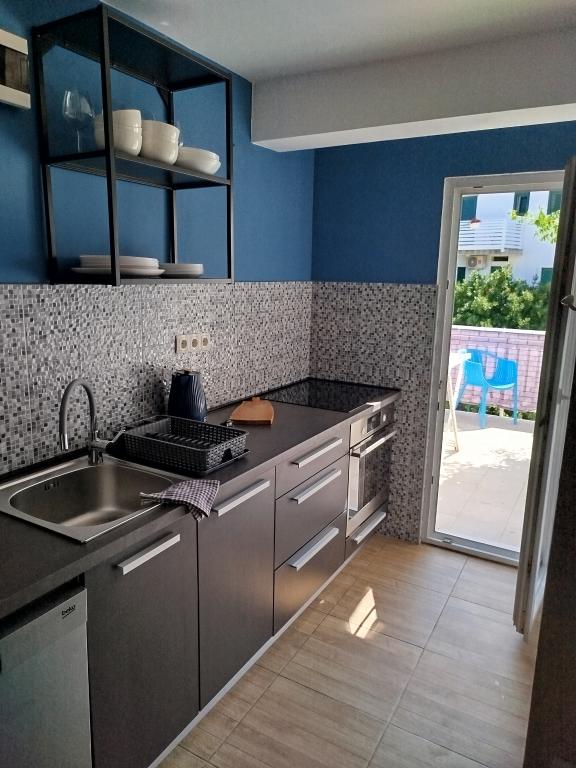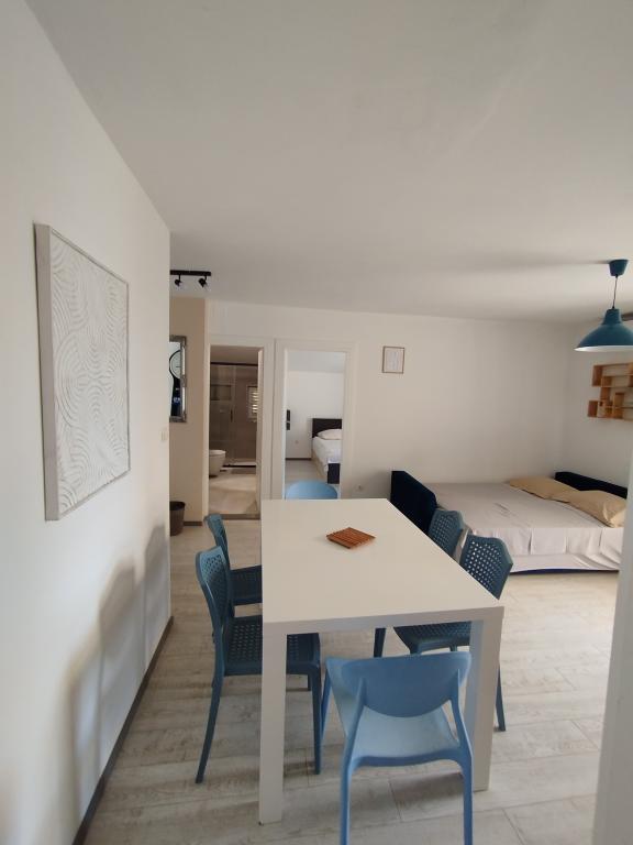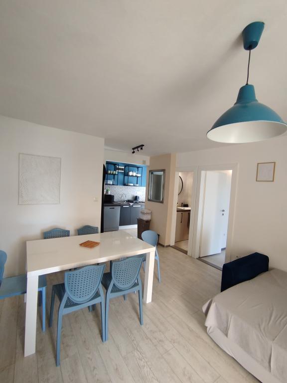 Apartments Blue Beach, położony w spokojnej części miasta, na plaży, nad brzegiem morza. W centrum i innych obiektów jest tylko 5 minut na piechotę. Wszystkie apartamenty mają widok na morze, lasy sosnowe i pięknym ogrodem. Apartamenty są dobrze wyposażone we wszystkie niezbędne udogodnienia. Możliwość korzystania, ogród, grill i plac zabaw. parking w podwórzu.