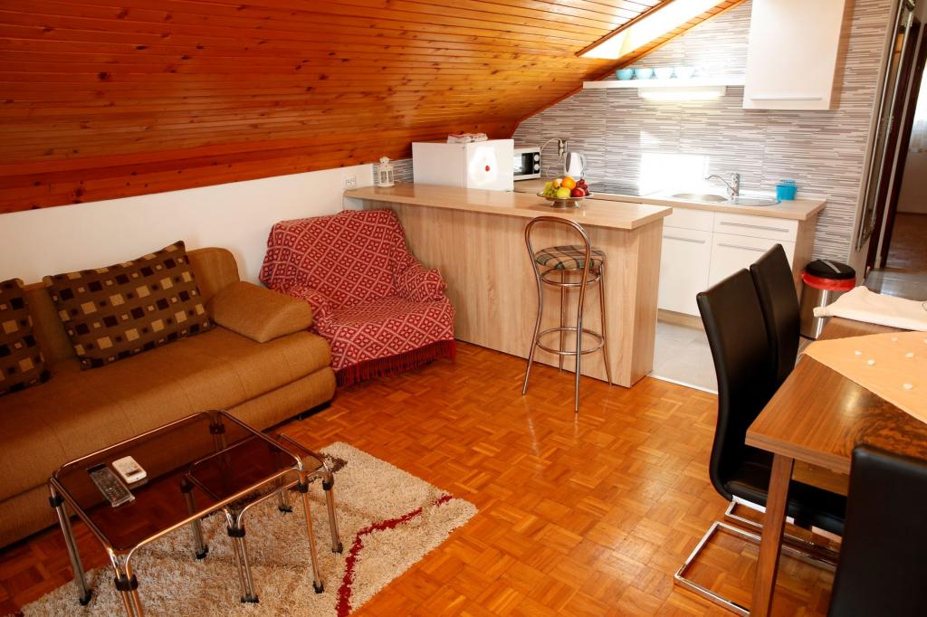 Apartamenty Tarle znajdują się w doskonałej lokalizacji, ponieważ wszystkie udogodnienia są dostępne w ciągu dwóch minut spacerem. Najbliższa plaża, "Hangar", znajduje się 100 metrów od obiektu. Apartamenty są w pełni wyposażone, w tym bezpłatny parking (niestety goście wynajmujący pokoje nie mają strzeżonego parkingu, który jest dostępny tylko po uzgodnieniu z właścicielem). Do dyspozycji Gości jest WiFi i klimatyzacja. Wszystkie podatki są wliczone w cenę.