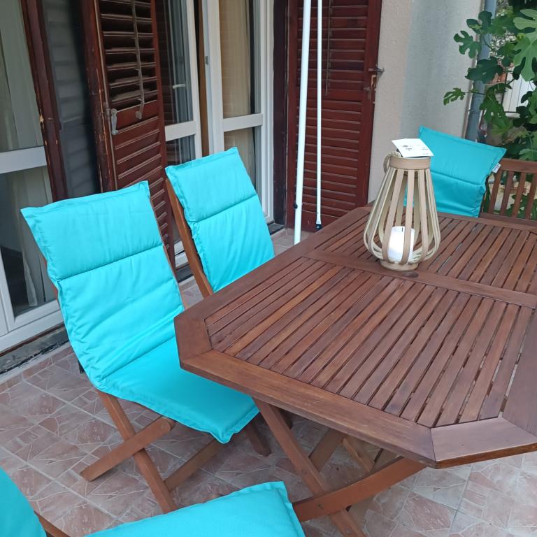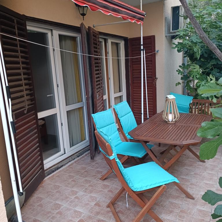 Apartamenty położone są w spokojnej części miasta. Każdy apartament posiada duży taras na parterze oraz dużą ochronę przed słońcem dzięki zieleni i markizie ochronnej, dzięki której można regulować cień lub dawkę słońca. Dostęp dla osób niepełnosprawnych jest możliwy, każdy apartament posiada taras o powierzchni 65 (m2) + 15 (m2), nieograniczony dostęp do Internetu, telewizję satelitarną, klimatyzację, grill zewnętrzny, ogrzewanie centralne w zimie. do/ Tomija/ mini marketu.