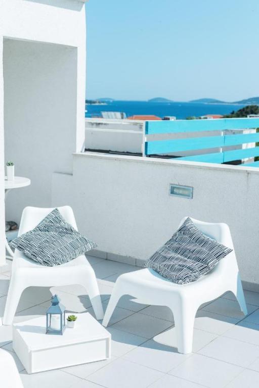 Dom wakacyjny Ljubica położony jest w samym centrum miejscowości Vodice, 450 metrów od Błękitnej Plaży i 800 metrów od plaży Male Vrulje. Na parterze domu znajduje się w pełni wyposażona kuchnia z jadalnią i łazienką. Na pierwszym piętrze znajduje się pokój z łóżkiem małżeńskim, a na drugim piętrze pokój z łóżkiem małżeńskim i jednym dodatkowym łóżkiem. Oba pokoje wyposażone są w klimatyzację i telewizor. Z tarasu roztacza się widok na morze i starą część miasta Vodice. Najbliższym lotniskiem jest port lotniczy Split, oddalony od obiektu Holiday Home Ljubica o 71 km. Po wcześniejszej rezerwacji obiekt oferuje płatny transfer lotniskowy. W pobliżu (5 min. spacerem od domu) dostępny jest parking. Jest on dostępny za dodatkową opłatą i po wcześniejszej rezerwacji. Czekamy na Państwa przybycie!