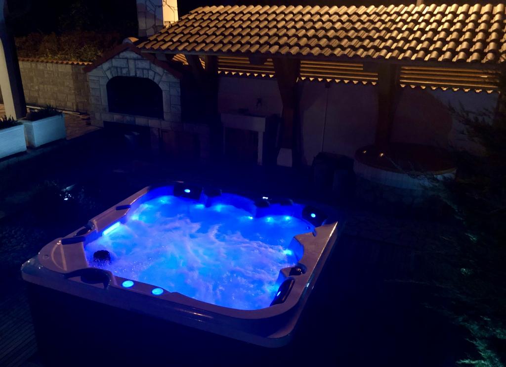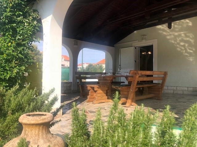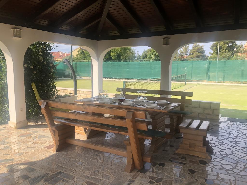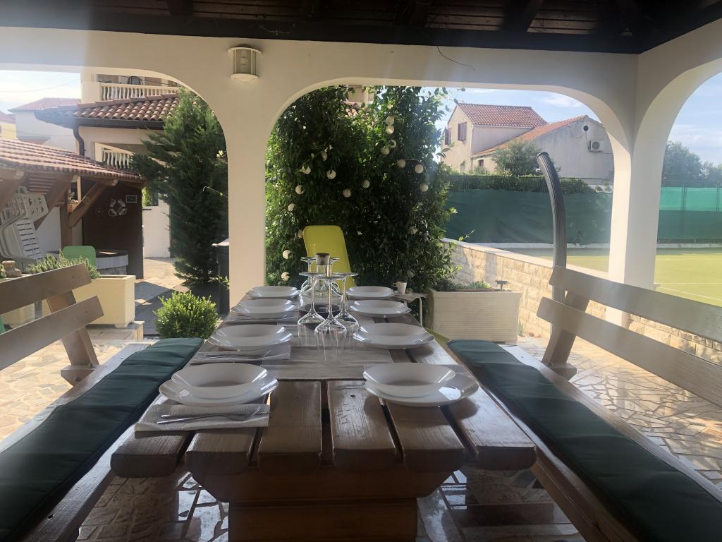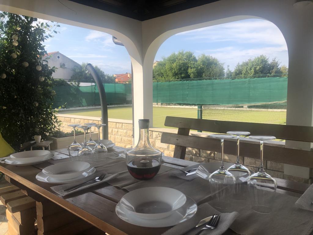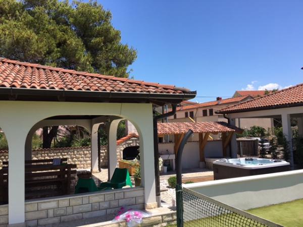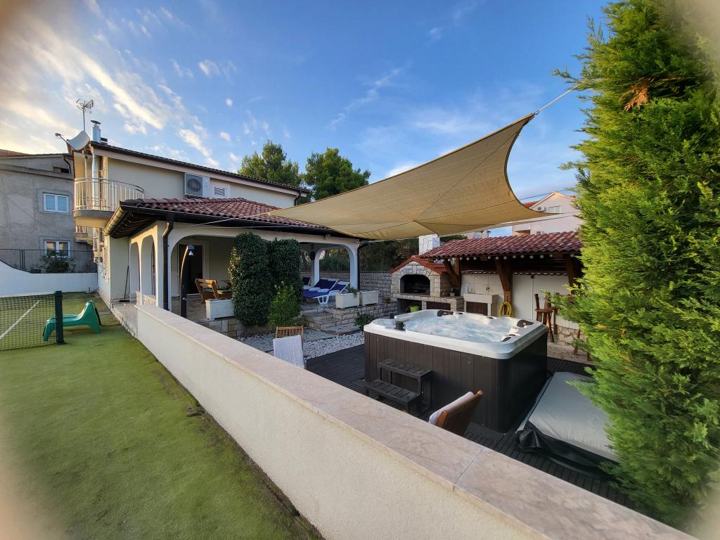 Cały dom tylko dla Ciebie! Raj dla rodzin! Witamy w Villi Melosa! Komfortowy dom wakacyjny w miejscowości Vodice z prywatnym kortem tenisowym. Dom może pomieścić do 10 gości. Posiada 5 sypialni, 3 łazienki, kuchnię, salon i przestronny taras, na którym można odpocząć i cieszyć się grillowaniem, a także zewnętrzne jacuzzi dla 5 osób. Dom jest klimatyzowany. Nieruchomość dysponuje 3 miejscami parkingowymi, w tym dwoma w garażu krytym. Cała posesja jest ogrodzona, dzięki czemu możesz mieć pewność, że dzieci nie wyjdą na ulicę i będą mogły beztrosko bawić się na przestronnym podwórku.