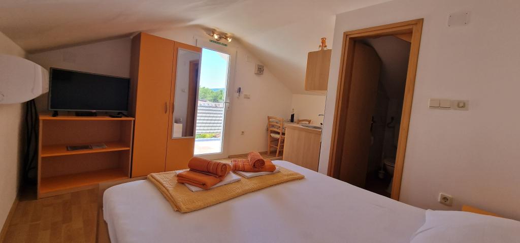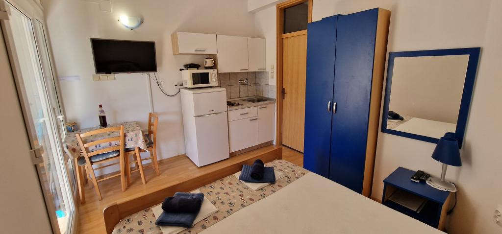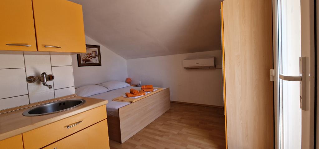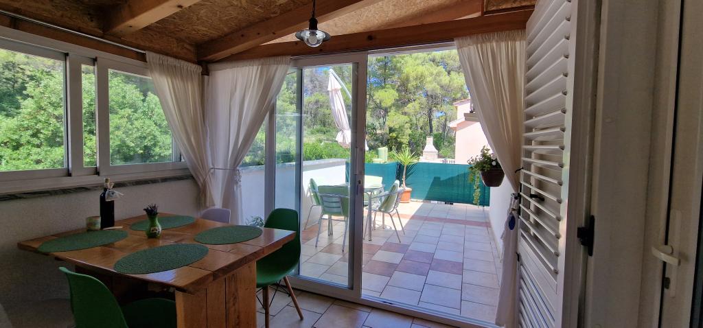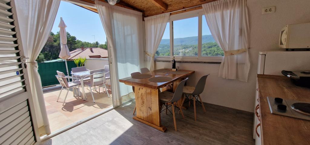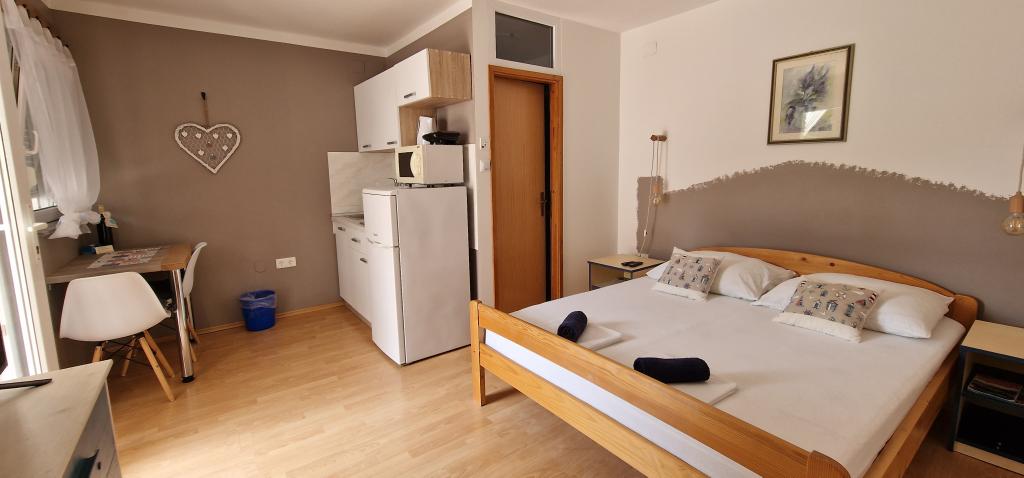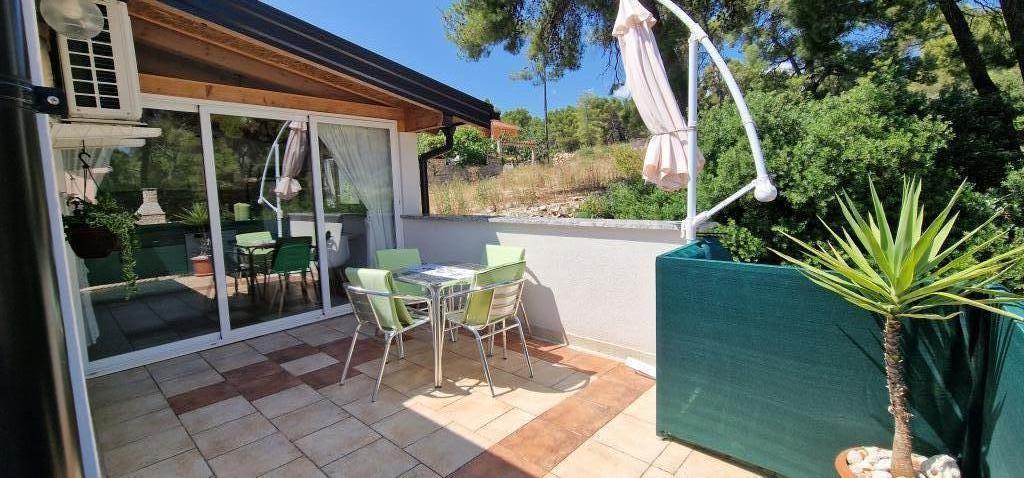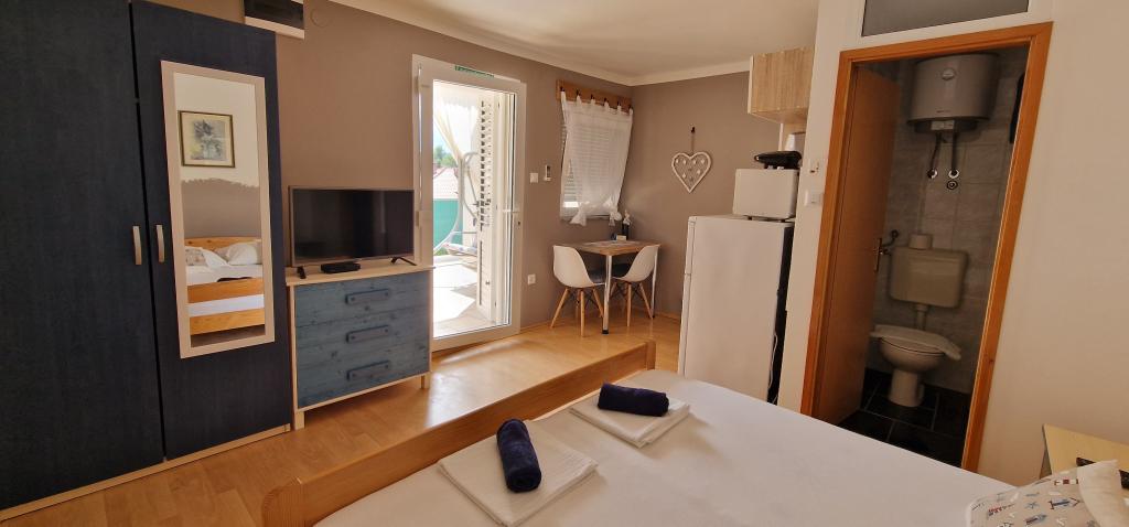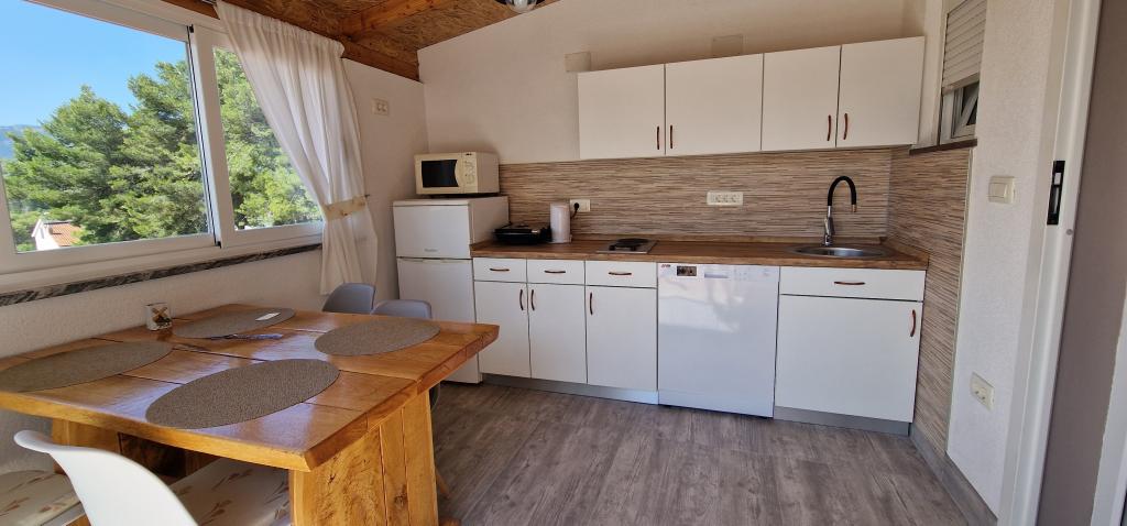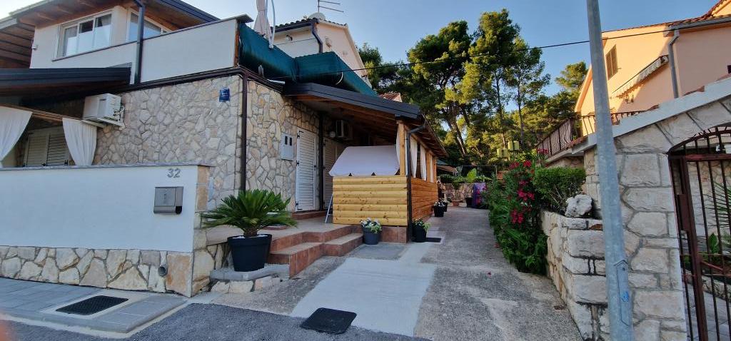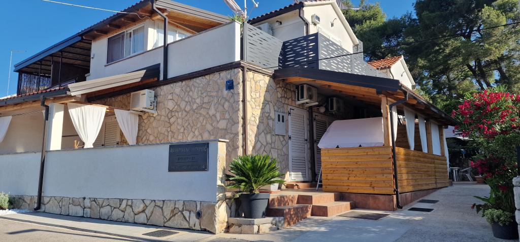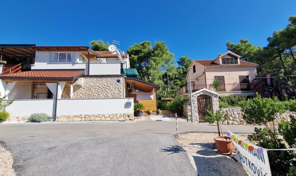 Nasz dom położony jest na samym początku półwyspu, w miejscowości Zaglav, więc morze jest z dwóch stron, tzn. do pierwszej zatoki jest już 100 m, a po drugiej stronie jest nieco większa odległość (około 500 m). Dom składa się z sześciu apartamentów o różnej powierzchni (dla 2-4 osób). Każdy apartament posiada własną łazienkę, kuchnię i taras. Przed domem znajduje się parking tylko dla gości naszego domu. Goście mogą korzystać z grilla na świeżym powietrzu (elektrycznego). Odległość od domu do centrum Vrboski, tj. do sklepu i poczty, wynosi około 900 m. Droga do centrum i głównej plaży miejskiej Soline biegnie wzdłuż wybrzeża. Odległość od przystanku autobusowego wynosi 900 m. Odległość od portu promowego wynosi 10 km (Stari grad). Odległość od apteki i pogotowia ratunkowego wynosi 6 km (Jelsa), gdzie znajduje się również pogotowie ratunkowe. Odległość od stacji benzynowej wynosi 5 km. Zaopatrzenie w wodę: lokalne ujęcie wody Rodzaj plaży: piaszczysta, kamienista, żwirowa, z większymi kamieniami i płytami betonowymi Dojazd do obiektu samochodami osobowymi: dobry