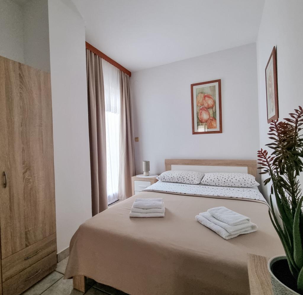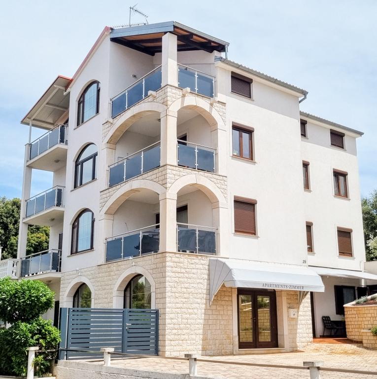 Apartamenty znajdują się w rodzinnym domu 400 m od morza i 10 minut spacerem od centrum miasta. Apartamenty zlokalizowane są w spokojnej części miasta i pozwalają swoim gościom zrelaksować się w zalesionym ogrodzie z altaną. Parking jest prywatny. Ceny wszystkich apartamentów podlegają negocjacji i są orientacyjne w zależności od okresu i ilości osób.