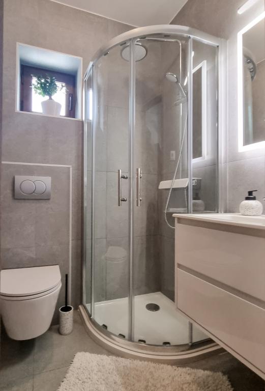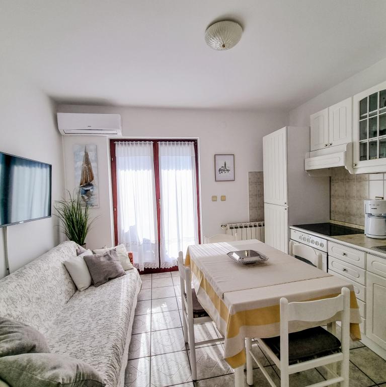 Apartament jest czysty, wyposażony we wszystko, co potrzebne do przyjemnego pobytu, a także posiada piękny, przestronny taras z widokiem na morze. Bardzo miła i pomocna właścicielka. Na pewno tu wrócimy.