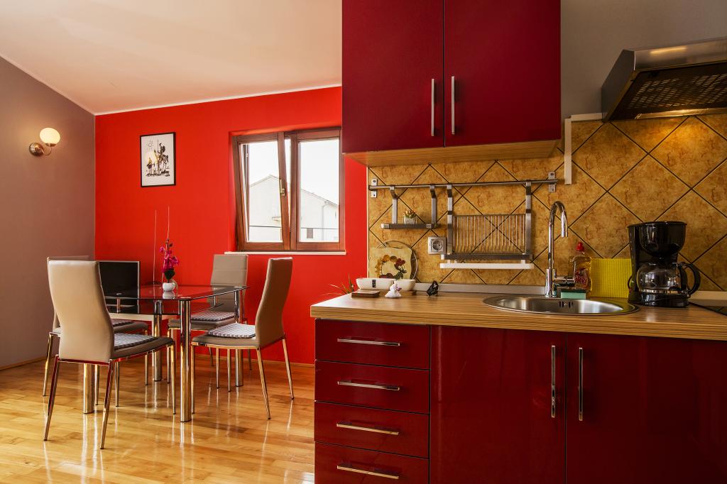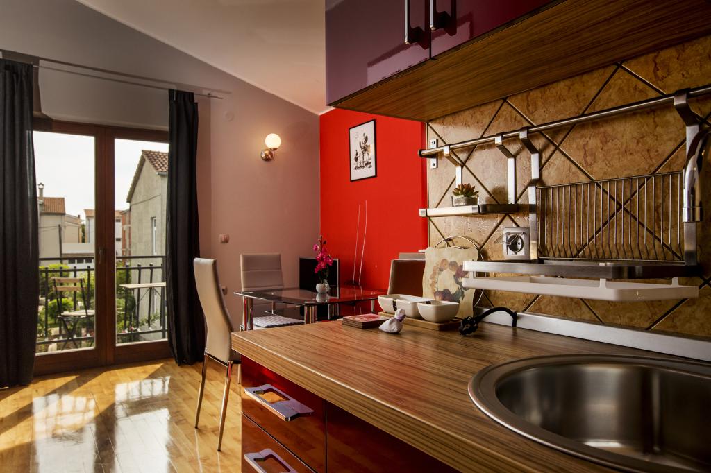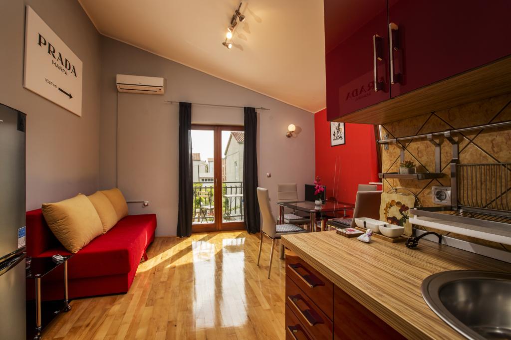 W pełni i nowocześnie wyposażone apartamenty 80 m od morza. Apartament A1 (78 m2) składa się z dwóch sypialni, kuchni, łazienki oraz dużego salonu z jadalnią i dodatkowym łóżkiem. Pokój jest klimatyzowany i może pomieścić maksymalnie 6 osób. Goście mają dostęp do telewizji satelitarnej, bezprzewodowego Internetu, ekspresu do kawy, kuchenki mikrofalowej, tostera i sejfu. Apartament A2 (41 m2) składa się z jednej sypialni oraz przestrzeni z kuchnią, stołem jadalnym i dodatkowym łóżkiem. Apartament jest klimatyzowany i może pomieścić maksymalnie 4 osoby. Posiada dwa balkony, a Goście mają do dyspozycji telewizję satelitarną, internet WiFi, ekspres do kawy, kuchenkę mikrofalową, toster i sejf. Studio A3 przeznaczone jest dla maksymalnie 2 osób, posiada balkon, jest klimatyzowane, a goście mają do dyspozycji telewizję satelitarną, internet WiFi, ekspres do kawy, kuchenkę mikrofalową, toster i sejf. Istnieje również możliwość wynajęcia całego domu, w którym może zamieszkać nawet 12 osób.