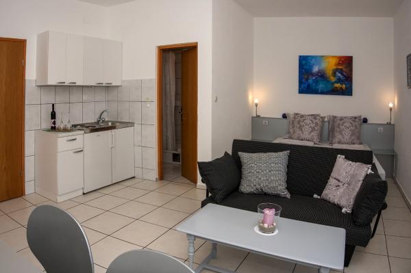 Wspaniałe apartamenty.. bardzo czyste i wyposażone. 2 min od plaży w cichym otoczeniu. Cała pochwała dla właścicieli, bardzo mili i sympatyczni, prawdziwi gospodarze. Mieliśmy problem z autem, dzwonili do swoich znajomych, żeby nam pomogli, nawet dali nam rowery na spacer, po prostu zachwyceni.