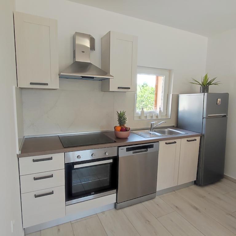 Doskonałe zakwaterowanie, nienagannie schludne, urządzone i umeblowane mieszkanie na relaksujące wakacje. Przestronny taras do przyjemnych spotkań towarzyskich, osobne wejście do mieszkania i jest naprawdę cicho... Byliśmy w wielu różnych apartamentach, ale ten jest najlepszy! Gospodyni Marina jest bardzo miła, miła i dyskretna, jesteśmy wdzięczni za drobne oznaki uwagi podczas naszego pobytu. W cieniu dużego drzewa koštela znajduje się miejsce parkingowe. W zasadzie idealny do pływania, do miasta, sklepów, restauracji. Możliwość powrotu!