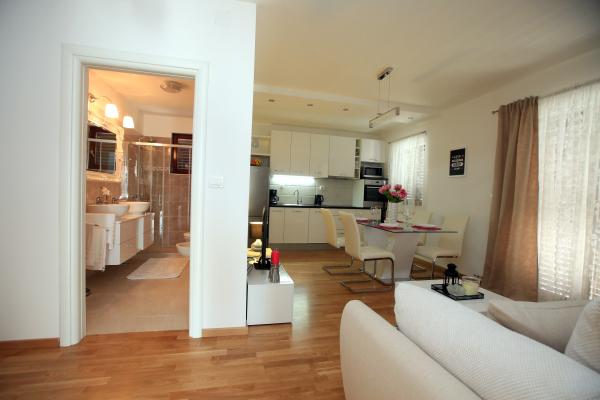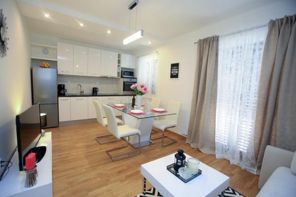 Mieszkaliśmy w dużym mieszkaniu na piętrze, które jest tak pięknie urządzone, wszystko jak nowe, nienaganna czystość, dosłownie wszystko tak jak było powiedziane, tak było. Przestronny taras, widok na morze, plaża kilka kroków, cisza, relaks… nie mogliśmy przejść lepiej, nie mamy słów. Dziękujemy za wszystko, mamy nadzieję, że zobaczymy się ponownie za rok. Nasze rekomendacje dla wszystkich !!