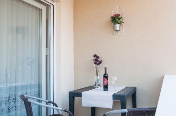 Mieszkanie jest dość duże i ładnie urządzone. Idealny dla rodzin z dziećmi i dla młodych par. Po mieszkaniu znajduje się duża altana, gdzie można zjeść grilla lub po prostu usiąść i cieszyć się. Plaża jest ładnie urządzone z dużą ilością cienia. Gorąco polecamy poranną kawę w kawiarni na plaży, gdzie można usiąść w kostiumie kąpielowym natychmiast po tym wyszła z morza. Polecamy również romantyczny nocny spacer po plaży i kolację w pobliskiej restauracji, a dzień pływanie i relaks na plaży, wypożyczyć rowery wodne i przejażdżki i wizyta w parku wodnym w pobliżu Solaris.