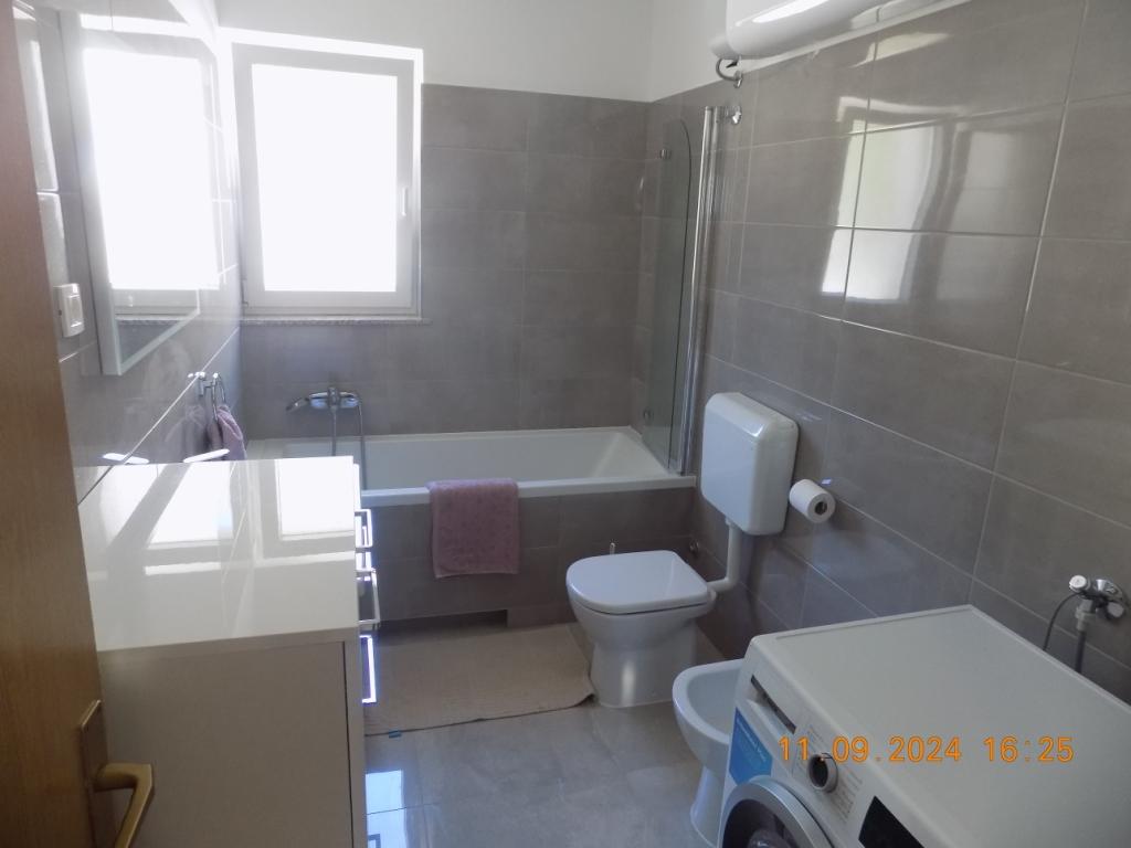 Apartament A6 jest idealny. Dobrze wyposażony i czysty apartament z pięknym widokiem na morze i dużym tarasem. 3 sypialnie, 2 łazienki zw pełni wyposażoną kuchnią. Ogólnie przyjemne otoczenie, prysznic na zewnątrz, parking i miejsce do przechowywania sprzętu plażowego. Gospodarz i jego rodzice są mili i gościnni. Plaża odpowiednia dla dzieci, piaszczysto-kamienista ze stopniowym zejściem do morza. Mieszkanie jest bardzo blisko plaży lub 50 metrów wzdłuż drogi. Możliwość wypożyczenia roweru wodnego, kajaka, paddleboardu. Polecamy bar na plaży Ginger, gdzie mają wyśmienitą pizzę, drinki, piwo oraz doskonałą i szybką obsługę. Mieszkanie jest fantastyczne, mam nadzieję, że wrócimy.