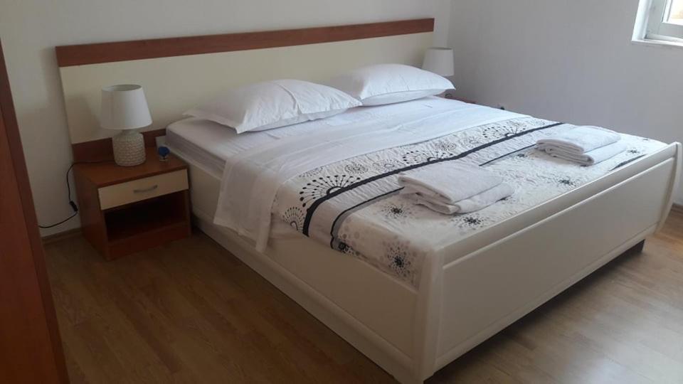 Czytaj więcej KwaterApartament A 5+2 ID 79415 znajduje się na pierwszym piętrze i posiada: dwie sypialnie, jedna z dużym podwójnym łóżkiem, druga z 3 łóżkami dla jednej osoby, kuchnię z salonem, w którym znajduje się rozkładana sofa dla dwóch osób osób, 2x łazienki i balkon ze stołem. Apartament A 3+2 ID 79447 znajduje się na pierwszym piętrze i posiada: jedną sypialnię z dużym łóżkiem małżeńskim + łóżko dla jednej osoby, kuchnię z salonem, w którym znajduje się rozkładana sofa dla dwóch osób, 2x łazienki oraz balkon ze stołem. Apartament typu Studio A 2+1 ID 79448 znajduje się na parterze i posiada: łóżko podwójne + łóżko pojedyncze, kuchnię, łazienkę i taras ze stołem. Apartament typu Studio A 2+0 ID 79449 znajduje się na parterze i posiada: podwójne łóżko, kuchnię, łazienkę oraz taras ze stołem. Zaliczka za rezerwację wynosi 20% z góry na konto bankowe najemcy, reszta po przyjeździe. Zaliczka nie podlega zwrotowi. Zameldowanie możliwe jest od godziny 15:00, wymeldowanie do godziny 10:00.