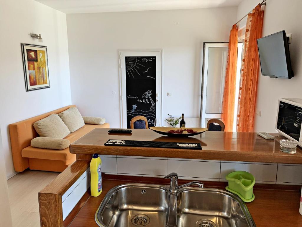 Villa RA zawiera 4 w pełni i nowocześnie wyposażone apartamenty ze wspólnym basenem, grillem, bezpłatnym parkingiem, ogrodem. Apartamenty położone są w cichej, kameralnej okolicy, 250 m od żwirowej plaży Jasenovo, odpowiedniej dla rodzin z małymi dziećmi, 200 m od restauracji z bogatą ofertą specjałów rybnych i mięsnych oraz baru, na plaży znajduje się są również dwie fajne restauracje / kawiarnie z zabawnymi grami. Villa Ra znajduje się 10 km od średniowiecznej perły - miasta Šibenik, 20 km od pięknego Parku Narodowego Krka, 20 km od Primošten, a miasta Split i Zadar oddalone są o 80 km.