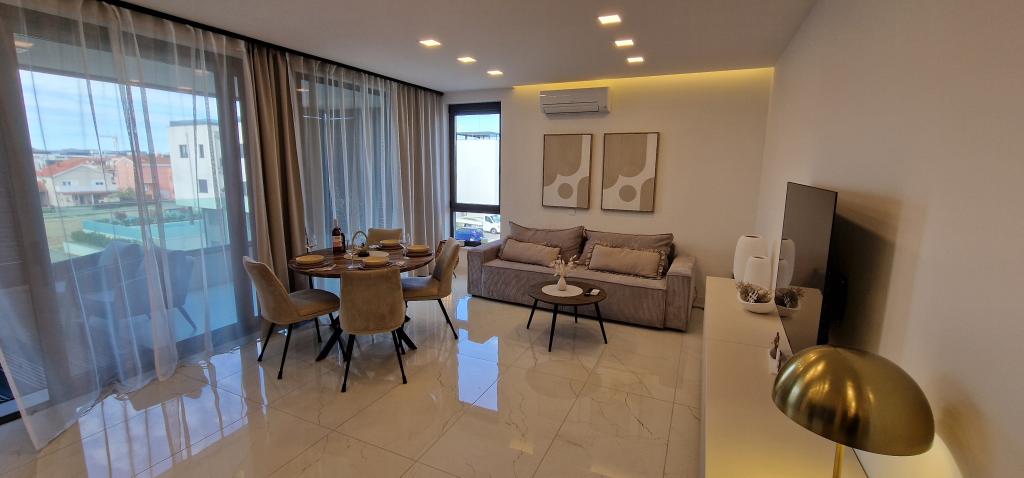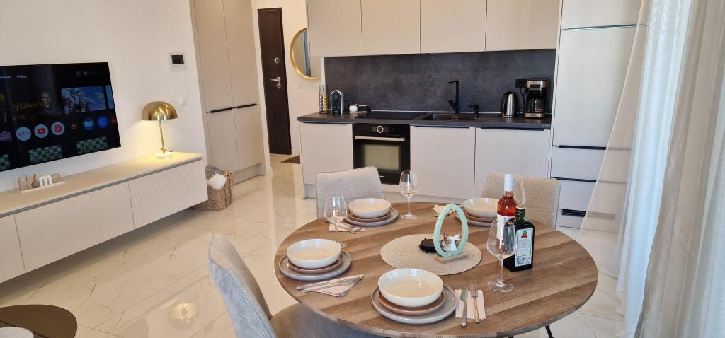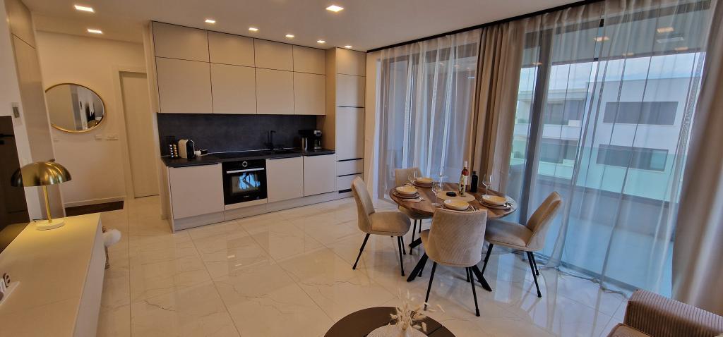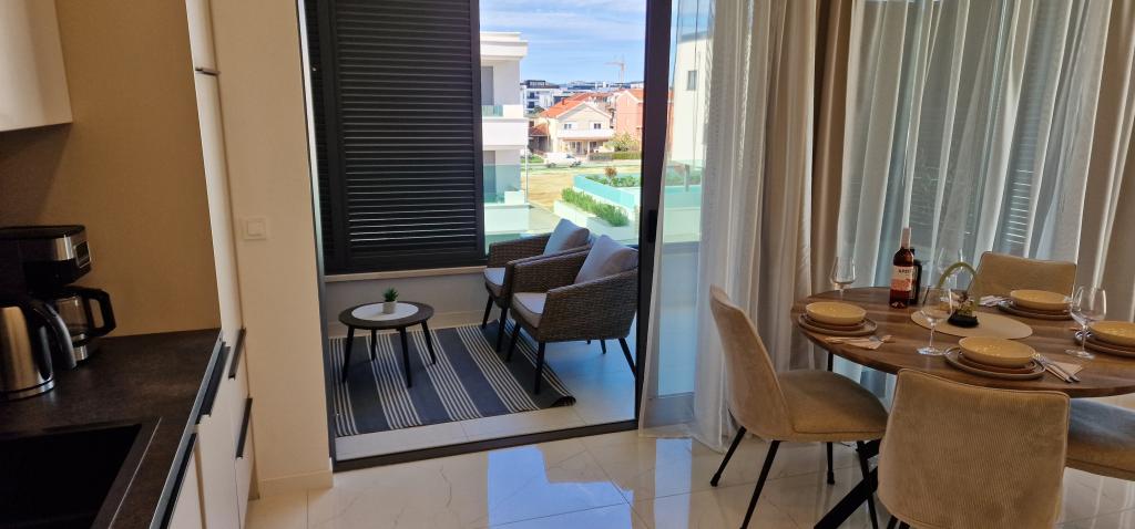 Ambiente Borik to nowy apartament nad morzem, który zapewnia idealne połączenie komfortu, przestrzeni i atmosfery. Obiekt położony jest w doskonałej lokalizacji „Borik Zadar” w pobliżu zadbanych plaż i hotelu Falkesteiner. Salon jest przestronny i jasny, idealny do relaksu i spotkań towarzyskich. Kuchnia jest w pełni wyposażona we wszystkie niezbędne sprzęty i naczynia kuchenne. W dwóch sypialniach, każda wyposażona w wygodne łóżka i eleganckie meble, a także w dwie łazienki, obiekt zapewnia wystarczająco dużo miejsca dla 2 par lub grupy składającej się z maksymalnie 4 gości. Duży taras oferuje dodatkową przestrzeń do wypoczynku na świeżym powietrzu. Na tarasie można zjeść śniadanie lub wypić wieczornego drinka, ciesząc się prywatnością i cichym kącikiem, w którym można się zrelaksować. Apartament jest luksusowo umeblowany, ze szczególną dbałością o szczegóły. Do dyspozycji gości jest także prywatny parking i garaż, co zapewnia wygodę i bezpieczeństwo gościom przyjeżdżającym samochodem. Krótko mówiąc, ten nadmorski apartament zapewnia wszystko, czego potrzebujesz do komfortowego pobytu. Po męczącym spacerze wzdłuż nabrzeża Zadaru, winda okazała się mile widziana.