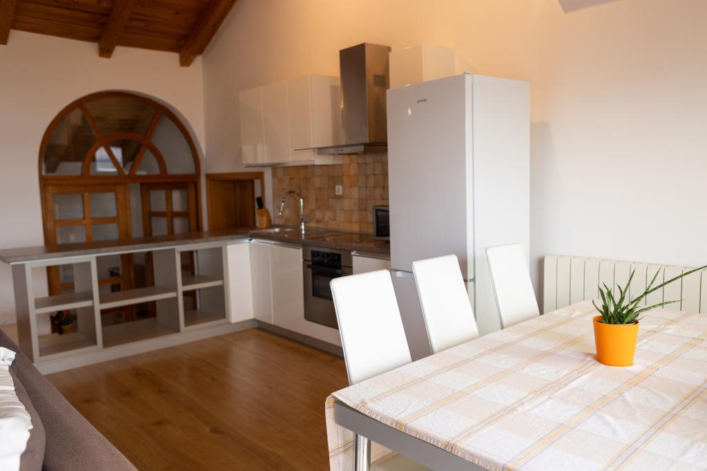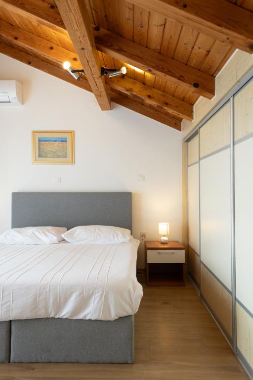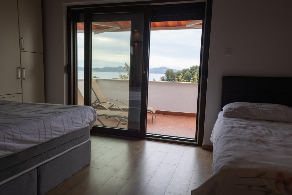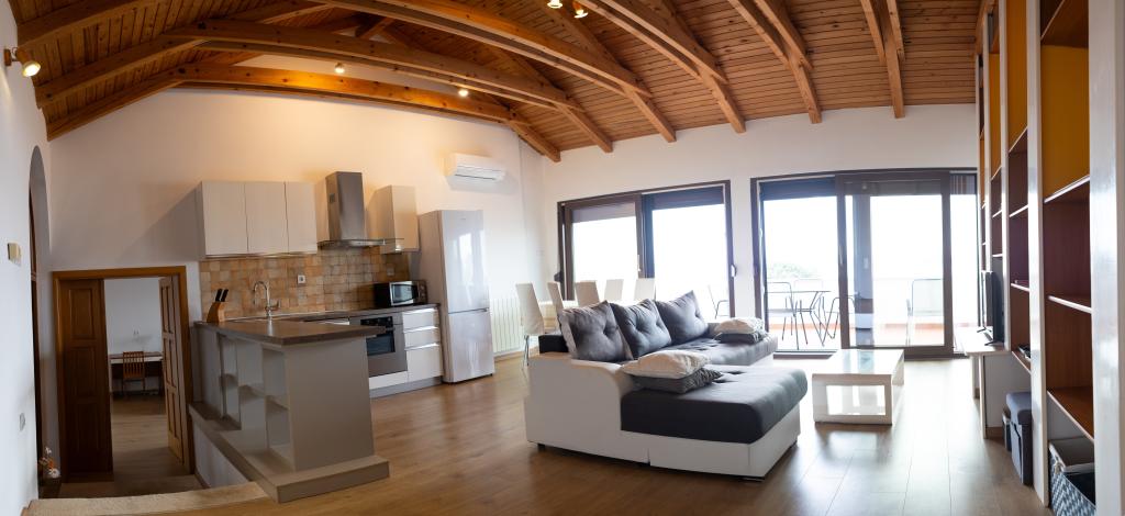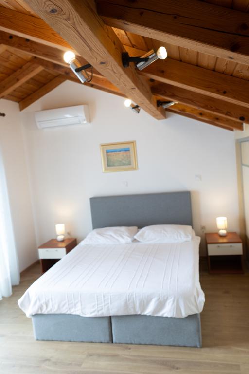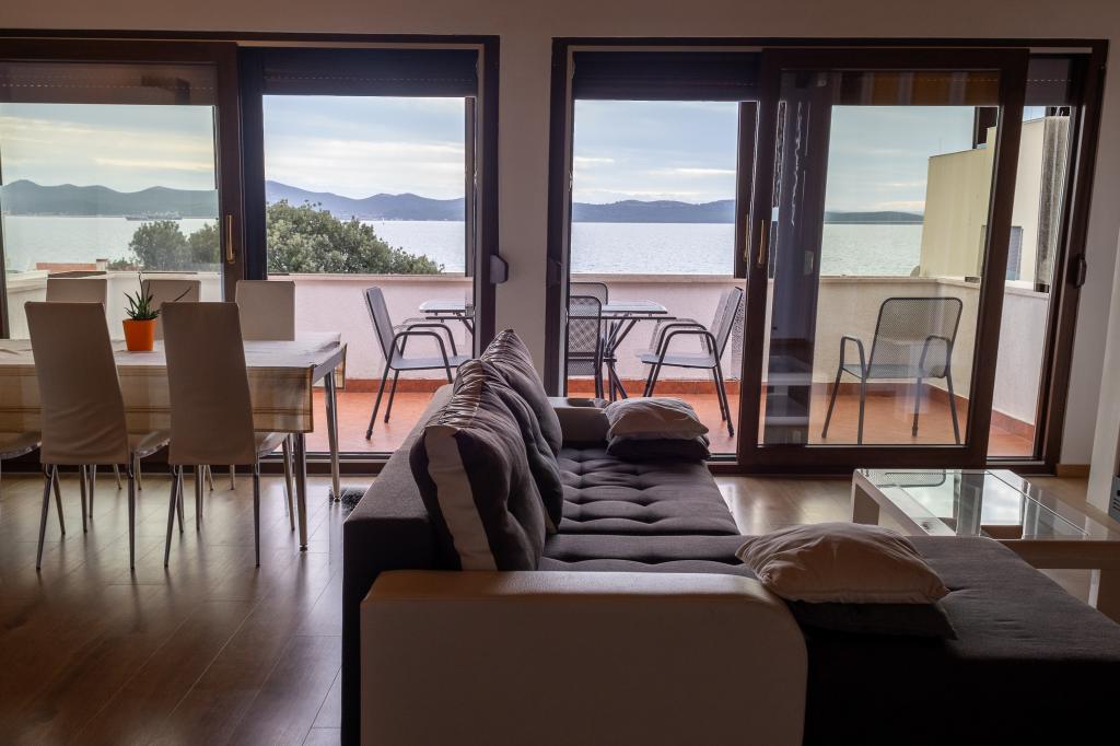 Przestronny, 3-pokojowy apartament (100 m²) na 2. piętrze rustykalnego domu Anica, położonego w spokojnej miejscowości Diklo, zaledwie 6 km od centrum Zadaru i 100 m od morza. Apartament wyposażony jest w duży salon z jadalnią (38 m²) z telewizją satelitarną, klimatyzacją i dostępem do tarasu z widokiem na morze. Dwie wygodne sypialnie oferują elastyczne zakwaterowanie – jedna z łóżkiem podwójnym, druga z łóżkiem pojedynczym i łóżkiem podwójnym oraz prywatnym prysznicem/WC. Obie są klimatyzowane i mają dostęp do tarasu. W pełni wyposażona, otwarta kuchnia obejmuje piekarnik, zmywarkę, płytę ceramiczną, kuchenkę mikrofalową i ekspres do kawy. Do dyspozycji gości jest dodatkowy prysznic/WC i pralka. Trzy tarasy od strony południowej, wyposażone w meble, oferują widok na morze i są idealnym miejscem na relaks. Na terenie posesji znajduje się parking dla dwóch samochodów.