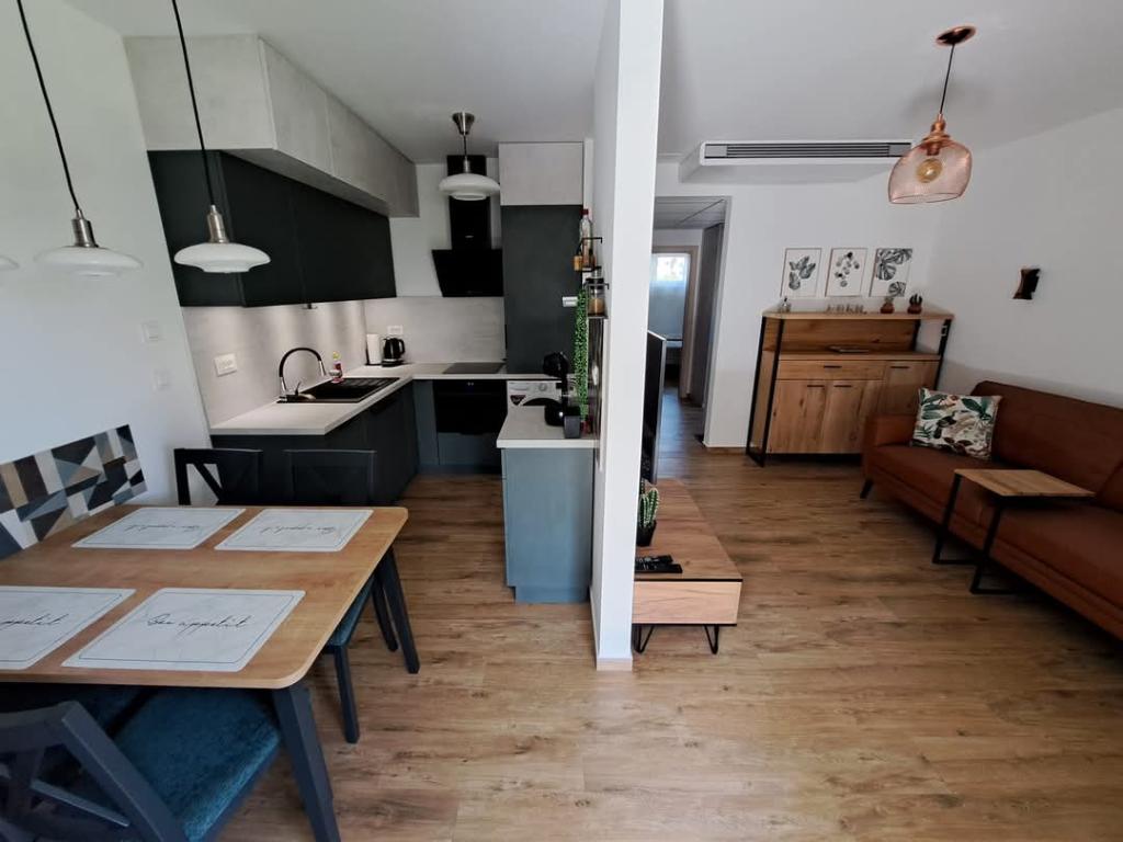 WYPOSAŻENIE APARTAMENTU: - klimatyzacja i ogrzewanie w każdym pomieszczeniu (pompa ciepła, ogrzewanie podłogowe w łazience) - WiFi - TV - pralko-suszarka - zmywarka - piekarnik z mikrofalą - płyta indukcyjna - lodówka - naczynia, przybory do gotowania, sztućce - czajnik elektryczny - ekspres do kawy (kapsułki) - ścierki kuchenne - pościel - ręczniki - ręczniki do jacuzzi - suszarka do włosów - sejf - komplet mebli ogrodowych - prysznic zewnętrzny - suszarka i spinacze do prania - podstawowe środki czystości Apartament nie posiada grilla. Doskonałe dania z rożna można zakupić w pobliskich restauracjach. ODLEGŁOŚCI: 600m - centrum sportowo - rekreacyjne Višnjik (kryte baseny, korty tenis i padel, piłka nożna, koszykówka, tenis stołowy, bieżnie do joggingu, siłownia na powietrzu, place zabaw dla dzieci, park trampolin, mini golf, bouncing castle, tor do rolek /lodowisko), 1,8 km - stare miasto, 2 km - plaża Kolovare, 1,6 km - główny dworzec autobusowy, 10 km - lotnisko Zadar Zemunik