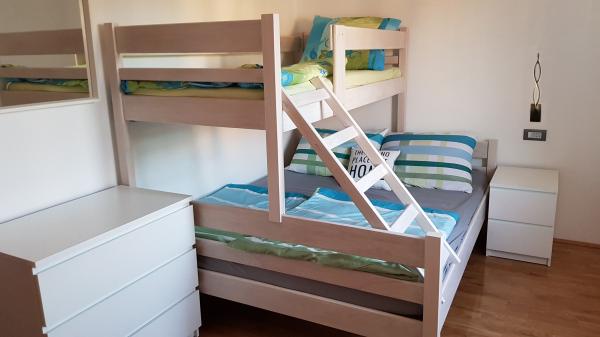 Mieszkanie znajduje się w spokojnej okolicy, 40m od plaży. Ma powierzchnię 140m2 z 3 sypialniami, 1,5 łazienkami, kuchnią, salonem oraz dwoma tarasami z widokiem na morze. Jest świetny dla dużych rodzin lub 2 rodzin, które nie mają nic przeciwko mieszkaniu razem i chcą trochę zaoszczędzić. Świetnie sprawdzi się również dla młodych par, które chcą miło spędzić czas. Jest wystarczająco wygodny dla 10 osób. Jeśli potrzeba ich więcej, wszystko jest możliwe :) Mieszkanie znajduje się na piętrze domu na zdjęciu, więc widok jest piękny. Apartament wyposażony jest w: TV, satelitę, odtwarzacz DVD, klimatyzację w każdym pokoju, zmywarkę i pralkę. W apartamencie można bezpłatnie korzystać z bezprzewodowego dostępu do Internetu. W ogrodzie znajduje się grill i stół do tenisa stołowego. Parking jest dostępny na podwórku. Nie mieszkamy w domu, więc głównie będziesz sam. :)