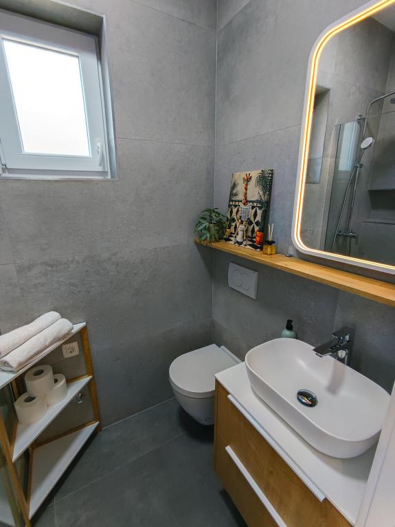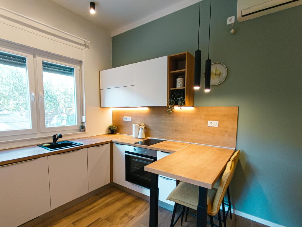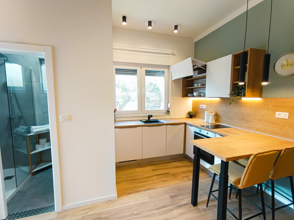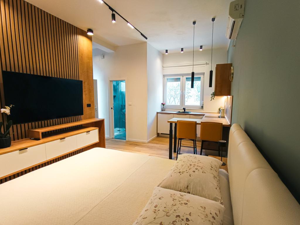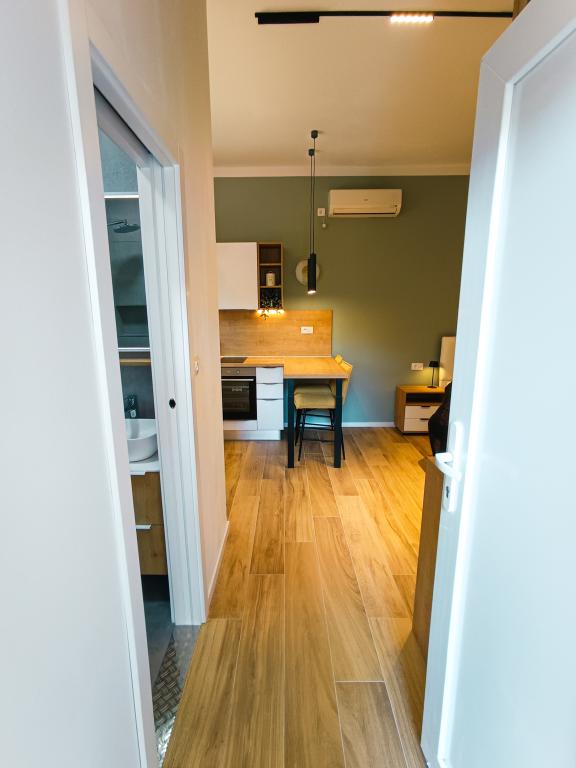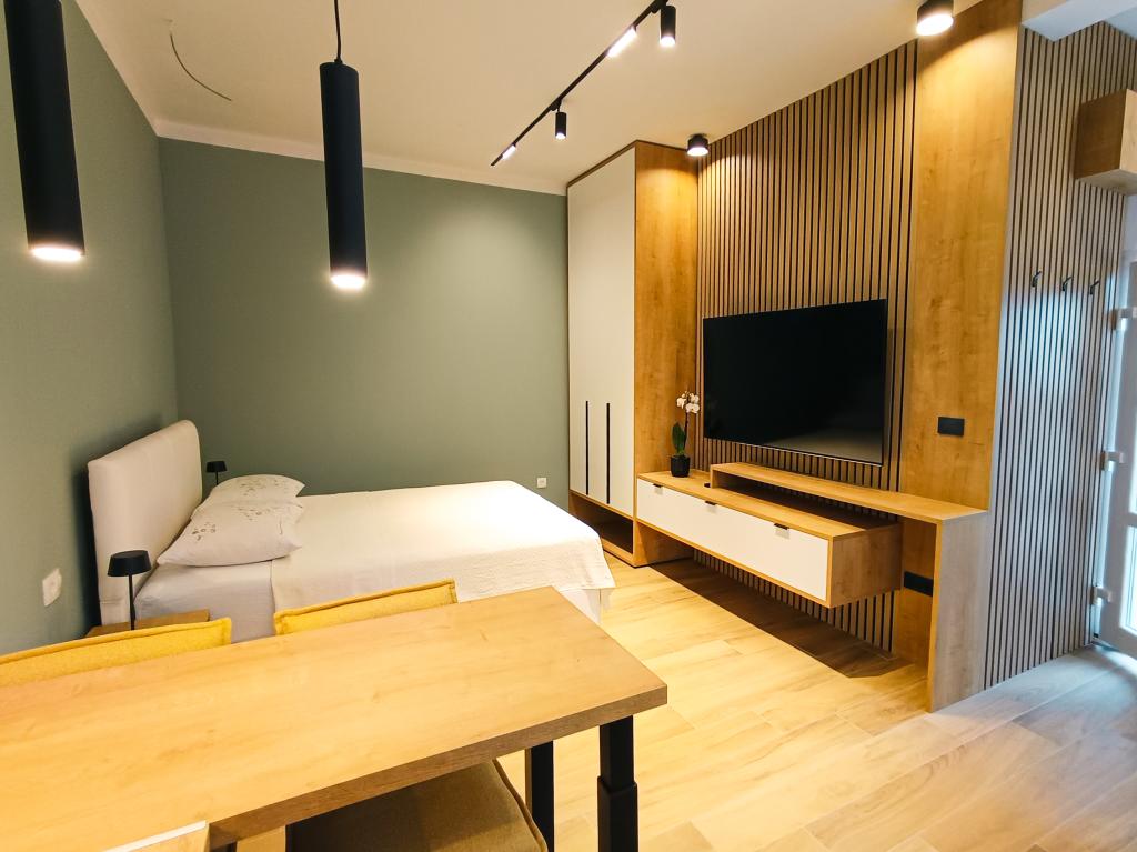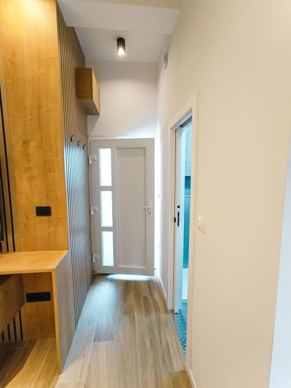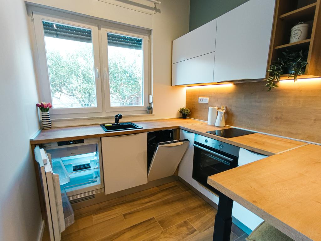W pełni i nowocześnie wyposażony apartament typu studio w cichej i rodzinnej okolicy. Idealny dla par lub rodziny z dzieckiem. Apartament jest klimatyzowany i posiada wszystkie niezbędne sprzęty AGD i udogodnienia, niezbędne do beztroskiego wypoczynku w Zadarze. W apartamencie znajduje się łóżko dwuosobowe typu BOX o wymiarach 160x200 z wygodnym materacem. Z urządzeń elektronicznych na szczególną uwagę zasługuje duży telewizor, zmywarka, pralnia z pralką oraz wbudowana lodówka z zamrażarką. W apartamencie znajdują się wszystkie niezbędne naczynia kuchenne i podstawowe przyprawy. Po wcześniejszym uzgodnieniu możemy wstawić łóżeczko dziecięce, krzesełko do karmienia lub dostawkę. Apartament posiada prywatny parking, a dla miłośników spacerów centrum miasta oddalone jest o około 20 minut spacerem. W pobliżu znajduje się centrum sportu i rekreacji Višnjik, idealne dla osób lubiących aktywność na świeżym powietrzu, obok którego znajduje się również duży plac zabaw dla dzieci.