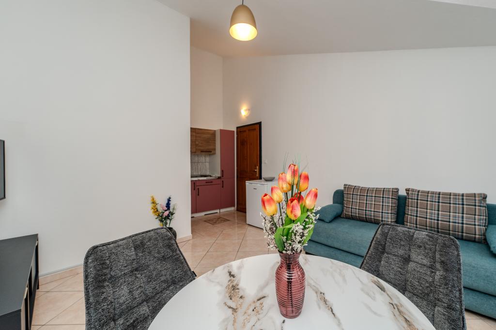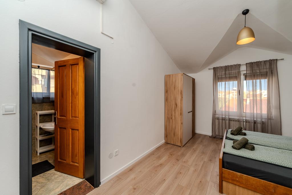 Apartamenty znajdują się w spokojnej części Zadaru, w dzielnicy Belafuža. Znajdują się na drugim piętrze domu rodzinnego. Lokalizacja jest niezwykle praktyczna – jesteśmy blisko wszystkich ważnych udogodnień, takich jak sklepy, restauracje, kawiarnie i komunikacja miejska, a jednocześnie łatwo dojechać do centrum miasta. Nasze apartamenty oferują wszystko, czego potrzebujesz do przyjemnego pobytu, niezależnie od tego, czy przyjeżdżasz z rodziną, partnerem, czy przyjaciółmi. Z niecierpliwością czekamy na Twój przyjazd!