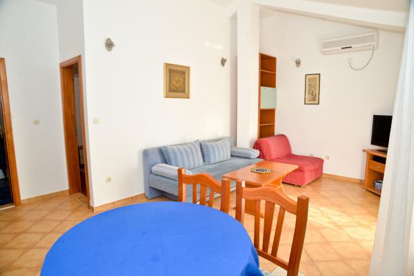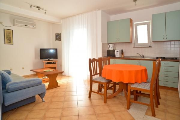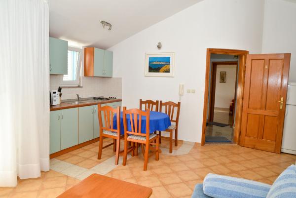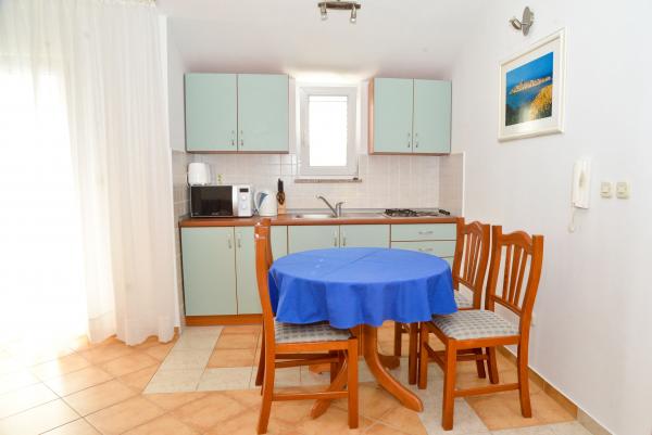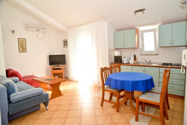 Blue Apartments, w pełni wyposażone, znajduje się w cichej okolicy, zaledwie 70 m od plaży, oferuje Państwu komfortowe warunki do relaksu i przyjemności. Widok na morze i wyspy z balkonu jest coś, co zapamiętasz na całe życie. Blue Apartments znajdują się w domu i składa się z pięciu apartamentów, z których jeden jest przystosowany dla niepełnosprawnych. Na dziedzińcu znajduje się grill, który jest dostępny w każdej chwili. Parking jest dostępny. Przy plaży jest żwir i dla dzieci w każdym wieku, a dorośli mogą cieszyć się bezpłatne leżaki i parasole. Połączenie z Internetem jest dostępny i bezpłatny w mieszkaniach i na plaży.