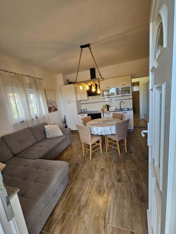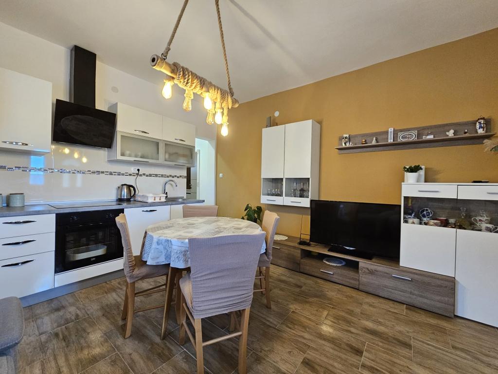Apartament CVITA znajduje się w rodzinnym domu w cichej i podwyższonej okolicy, idealny dla par i rodzin z dziećmi. W pełni i nowocześnie wyposażony apartament składa się z dwóch sypialni, łazienki oraz dużego salonu, kuchni i jadalni z widokiem. Mieszkanie jest komfortowe, klimatyzowane, a taras idealny do wypicia ulubionego drinka z widokiem i sielskim zachodem słońca. W apartamencie znajduje się grill na świeżym powietrzu, z którego można korzystać. Parking znajduje się na podwórku przed domem. Dostępne jest również bezpłatne WiFi i telewizor Smart TV. W bezpośrednim sąsiedztwie znajduje się sklep, sklep spożywczy, bank, poczta i inne udogodnienia. Dojazd samochodem do plaży Kolovare zajmuje 5 minut. Czekamy na Twój przyjazd.