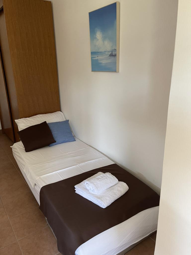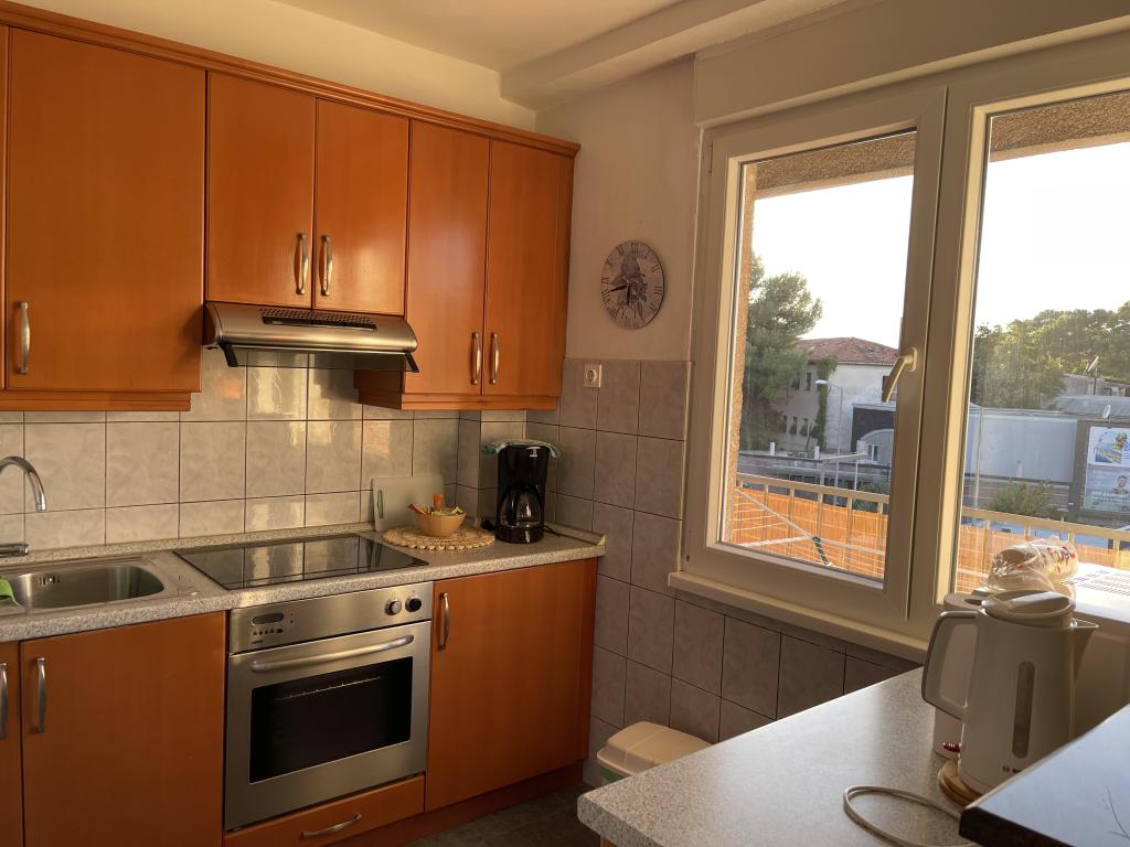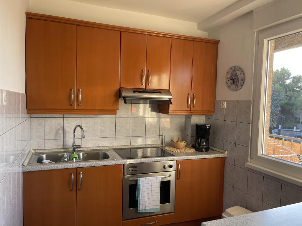 Mieszkanie znajduje się blisko centrum miasta i plaży, widok na morze, 3 piętro. Powierzchnia kwatery to 60m2, składa się z 2 sypialni, jedna z 2 osobnymi łóżkami /90X200/, a druga z łóżkiem małżeńskim /160X200/. W salonie kanapa dla piątej osoby. Kuchnia wyposażona: mikrofalówka, ekspres do kawy, czajnik, piekarnik. W łazience znajduje się prysznic i pralka, salon i jedna sypialnia mają wyjście na taras.Cena wynajmu obejmuje pościel, ręczniki, WI-FI, opłatę klimatyczną