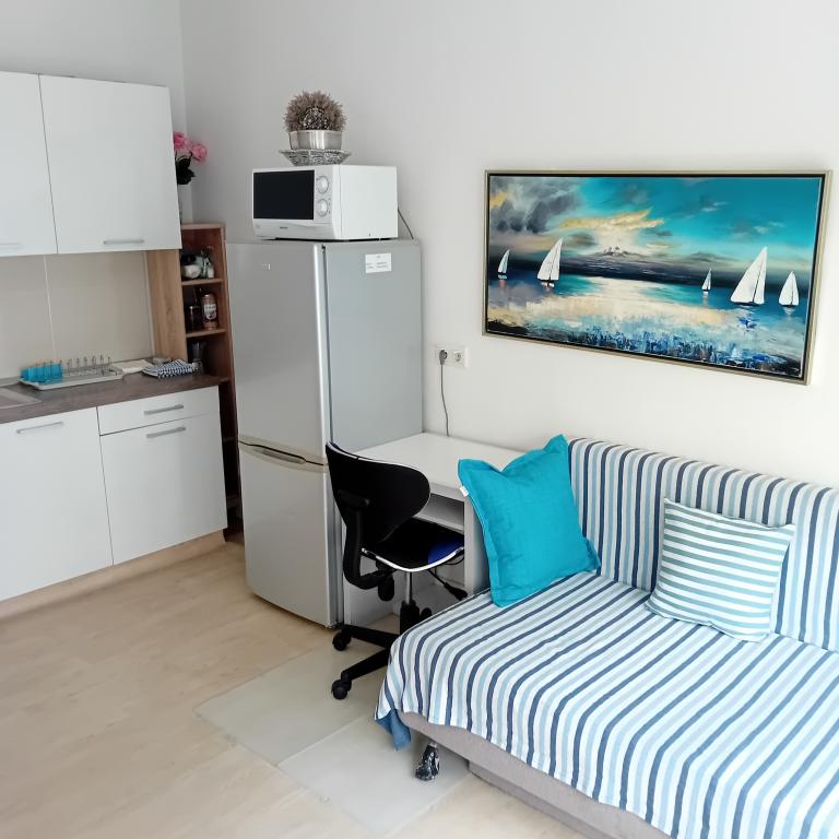 Opłata jest wliczone w cenę. Dokument potwierdzający rezerwację przy rezerwacjiMieszkanie umeblowane, tak jak na zdjęciach, z dużą ilością drobnych szczegółów, które sprawiają, że czujesz się jak w domu! Transport kolejowy jest w pobliżu budynku, 20 minut prosto do centrum. Piękne wrażenia i każda rekomendacja! W szczególności, i wielkie dzięki dla pani Ani w jej życzliwość, elastyczność i gościnności.