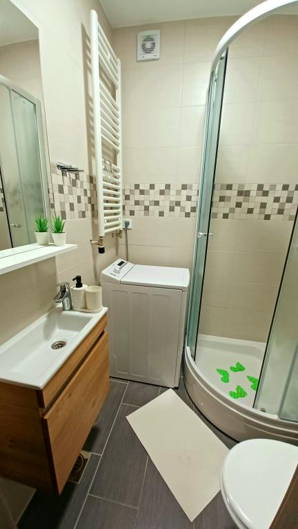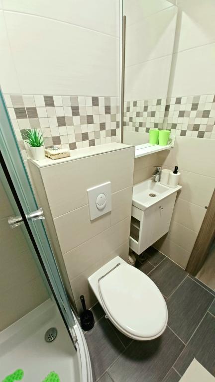 Obiekt składa się z 6 jednostek noclegowych, mogących pomieścić do 11 osób. Każda jednostka posiada własną kuchnię i łazienkę. Apartamenty położone są w spokojnej miejscowości, przy ślepej uliczce z wyjściem dla pieszych na drogę główną (50 m). Doskonałe połączenia komunikacyjne, blisko restauracji (300 m) i sklepów (100 m). Odległość od centrum miasta wynosi około 20 minut jazdy samochodem, rowerem lub komunikacją miejską. Doskonała lokalizacja apartamentów dla gości przyjeżdżających z przyczyn zdrowotnych ze względu na bliskość kilku szpitali i klinik.