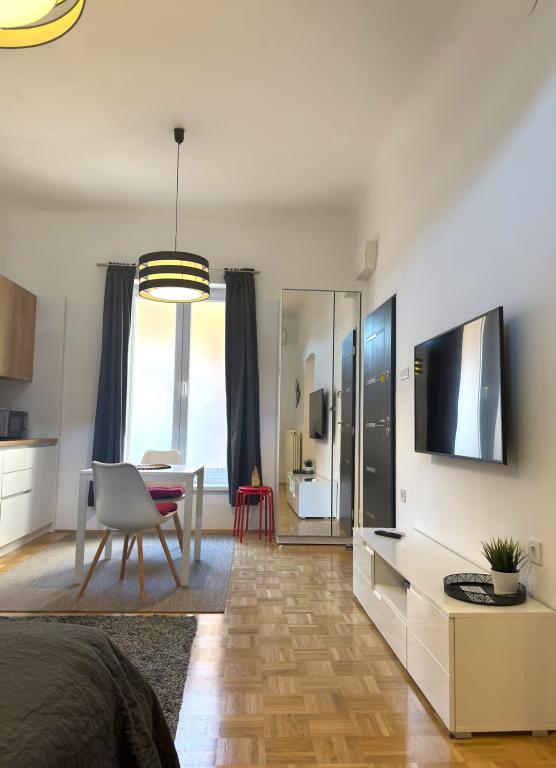 Apartamenty w sercu Zagrzebia – Frankopanska 11 Szukasz idealnego noclegu w centrum Zagrzebia? W prestiżowej lokalizacji przy ulicy Frankopanska oferujemy trzy nowocześnie urządzone apartamenty, idealne na krótki lub długi pobyt. Oferta noclegowa: Apartament z jedną sypialnią (50 m²) – przestronny apartament z w pełni wyposażoną kuchnią, komfortowym salonem, oddzielną sypialnią i łazienką. Odpowiedni dla maksymalnie 4 osób. Dwa apartamenty typu studio (ok. 30 m²) – kompaktowe, ale funkcjonalne przestrzenie dla 3 i 2 osób, idealne dla par lub osób podróżujących samotnie. Kuchnie są w pełni wyposażone: Zmywarka do naczyń Mikrofalówka Czajnik elektryczny Wszystkie niezbędne przybory kuchenne i naczynia do pełnego doświadczenia gotowania Lokalizacja, która inspiruje: W strefie wyłączonej z ruchu kołowego, w otoczeniu sklepów, muzeów, restauracji i kawiarni 7 minut spacerem do głównego placu w Zagrzebiu (Trg bana Jelačića) 3 minuty spacerem do Chorwackiego Teatru Narodowego (HNK) Przystanek tramwajowy zaledwie 50 metrów