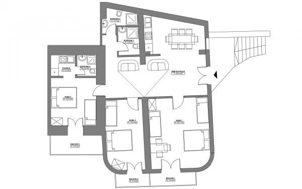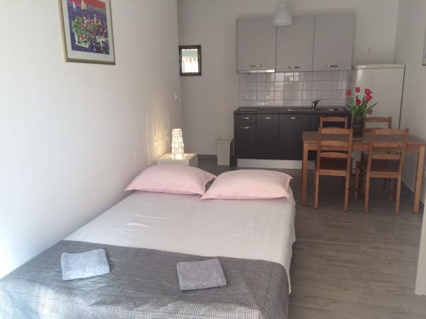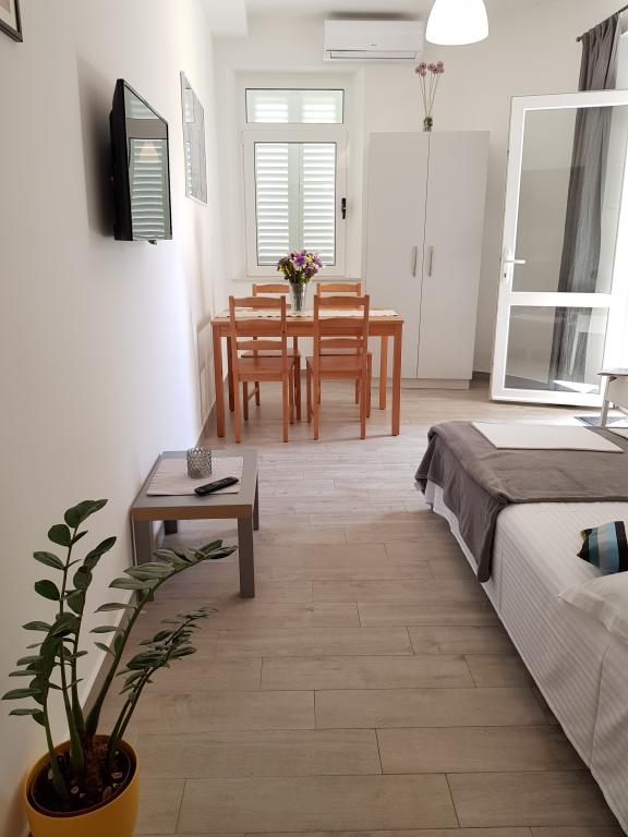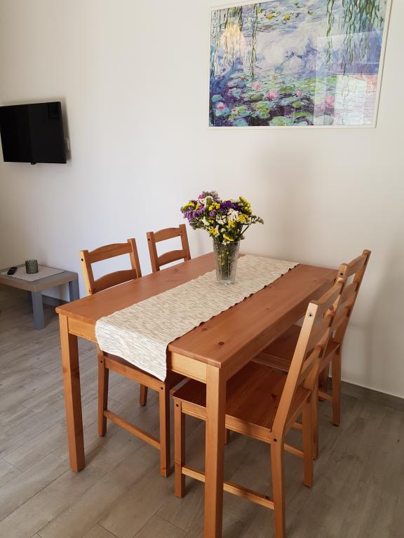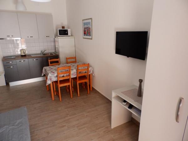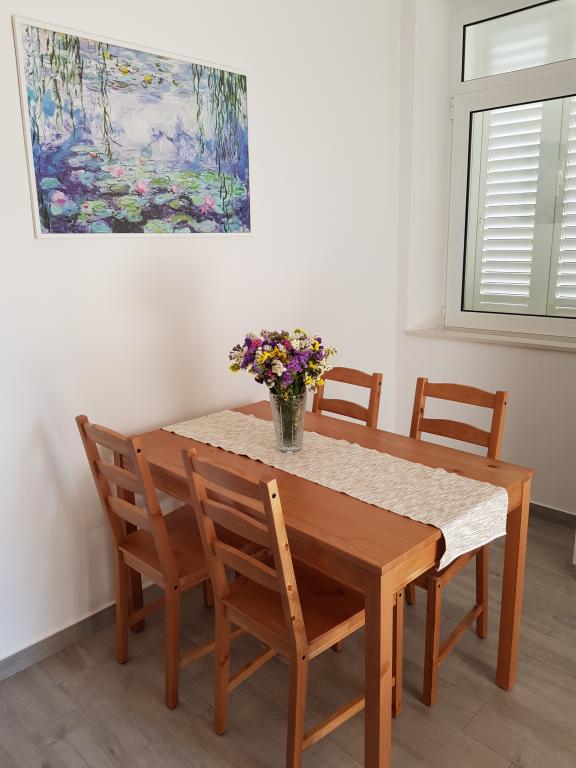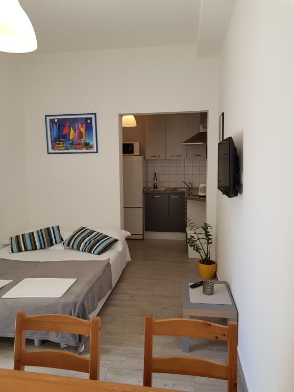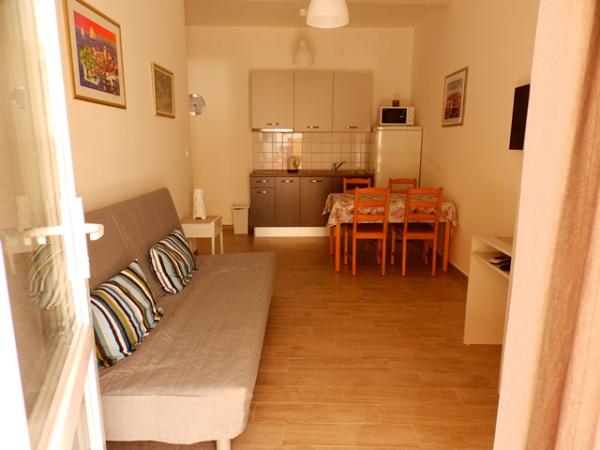 Apartament A2 2 znajduje się na parterze domu rodzinnego. Składa się z pokoju z łóżkiem (160x200cm), salonu z sofą (160x200cm), kuchni, łazienki i tarasu. Apartament A2 3 znajduje się na parterze domu rodzinnego. Składa się z pokoju z łóżkiem (160x200cm) i łóżkiem (90x200cm), salonu z sofą (160x200cm), kuchni, łazienki i tarasu. Apartamenty są całkowicie odnowione. Dostęp do tarasu jest łatwy dla wózków dziecięcych i rowerów. (tylko trzy schody). Ulica jest cicha i przeznaczona wyłącznie dla pieszych. Apartament A-10 1 (A-8 3) znajduje się na pierwszym piętrze. Składa się z jednego pokoju czteroosobowego, dwóch pokoi trzyosobowych, dwóch kuchni, dużego przedpokoju, trzech łazienek, trzech balkonów i tarasu przy wejściu, 40 m od plaży. Wejście jest oddzielone od deptaka. Oba apartamenty posiadają bezpieczne miejsca parkingowe i bezpłatny dostęp do Internetu.