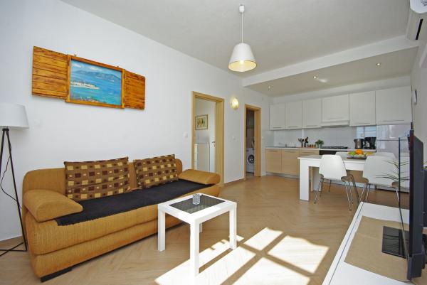 Apartamenty w strandhaus-dalmatien znajdują się w doskonałej lokalizacji, zaledwie 5 metrów od morza i plaży. Całkowicie i nowocześnie wyposażony w pierwszym rzędzie do morza iw cichym otoczeniu. Wszystkie apartamenty mają piękny widok na morze, aw pobliżu znajdują się 3 restauracje. Możesz zobaczyć więcej zdjęć na naszej osobistej stronie. Wpisz google: strandhaus-dalmatien, a znajdziesz naszą osobistą stronę internetową. Obiekt położony 5 minut spacerkiem do centrum. Parking strzeżony. Czekamy na Twoje zapytanie!