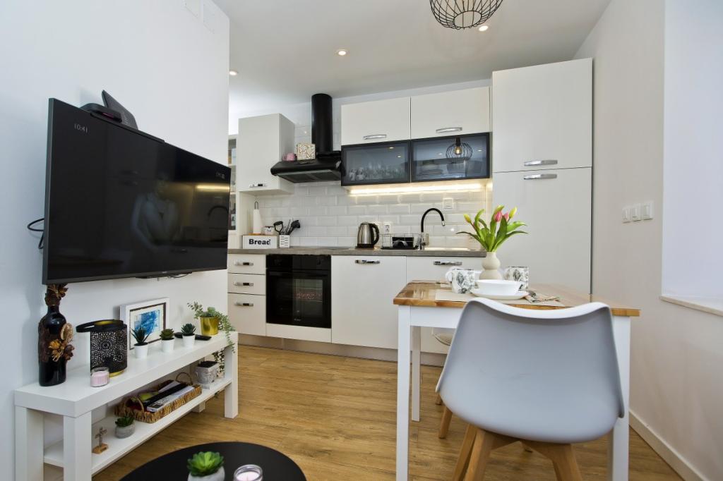 Dom składa się z apartamentu o powierzchni 30 m² i ogrodu o powierzchni 20 m². Apartament składa się z sypialni, łazienki, salonu z kuchnią oraz małego schowka. Z pokoju roztacza się piękny widok. Znajduje się w nim podwójne łóżko, pod którym znajduje się schowek na bagaż o wymiarach 160x200 cm. Znajduje się tam również duża szafa z przesuwanymi drzwiami, dwie szafki nocne z lampkami i klimatyzacja. Łazienka wyposażona jest w prysznic, grzejnik, wentylator, umywalkę i toaletę. Salon z oknem i kuchnia są połączone. Salon wyposażony jest w klimatyzację, sofę, telewizor, stół kuchenny z krzesłami. Kuchnia wyposażona jest w piekarnik, płytę grzewczą, zmywarkę, lodówkę, kuchenkę mikrofalową, podgrzewacz wody i toster. W małym schowku znajduje się pralka, bojler i stojak na buty. Ogród przeznaczony jest do spotkań towarzyskich i relaksu, a znajduje się tam leżak, parasol, krzesła i zestaw ogrodowy. Apartament znajduje się na pierwszym piętrze domu rodzinnego, a przed nim znajduje się duży ogród.