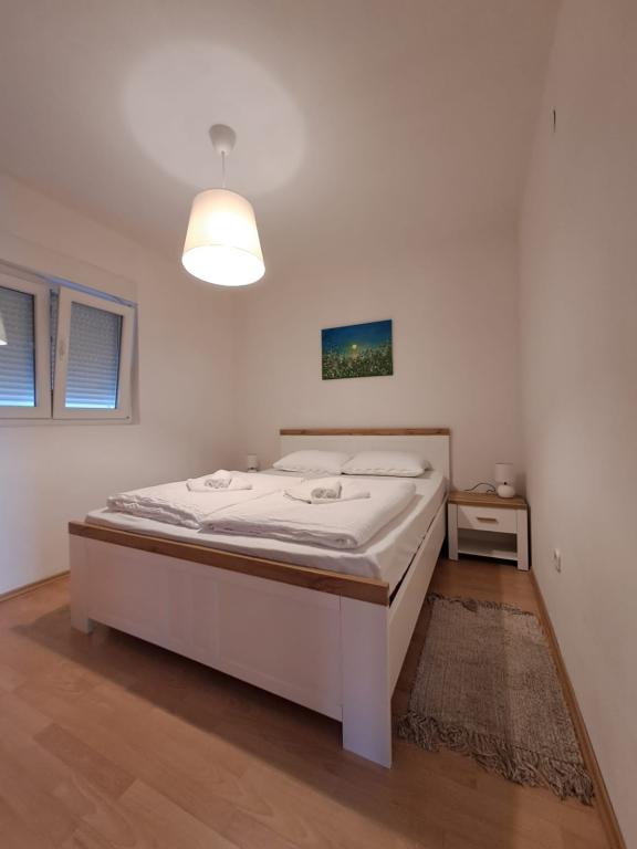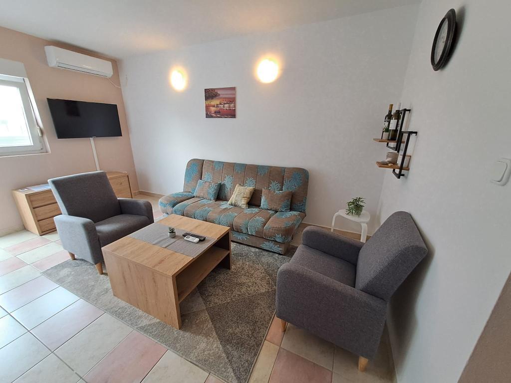 Znajduje się w spokojnej miejscowości Zaton (Zadar). Odległość od morza wynosi około 250 metrów, tyle samo jest do pierwszej piaszczystej plaży. Mieszkanie ma powierzchnię 46 m2 i jest w pełni wyposażone na przyjemne rodzinne wakacje. Składa się z dwóch sypialni, salonu, kuchni i łazienki. Istnieje możliwość wydzielenia oddzielnego pomieszczenia do przechowywania. Mieszkanie znajduje się na parterze i posiada dwa przestronne tarasy oraz strzeżone miejsce parkingowe na dwa samochody. Dostępny jest bezprzewodowy dostęp do Internetu, Max TV, klimatyzacja i grill.