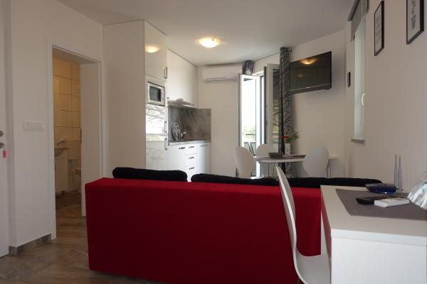 KwaterPłatność gotówką (waluta: EUR) lub przelewem bankowym, wymagana w dniu przyjazdu. Zaliczka: 25% ceny całkowitej. Godzina przyjazdu: 14:00 Godzina wyjazdu: 10:00 Cena zawiera podatek turystyczny. Cena rezerwacji na 10 lub więcej dni jest niższa o 5 euro za noc. Dopłata za dodatkowe łóżko w apartamencie wynosi 15 euro za noc. Prosimy wszystkich gości o przestrzeganie regulaminu obiektu.