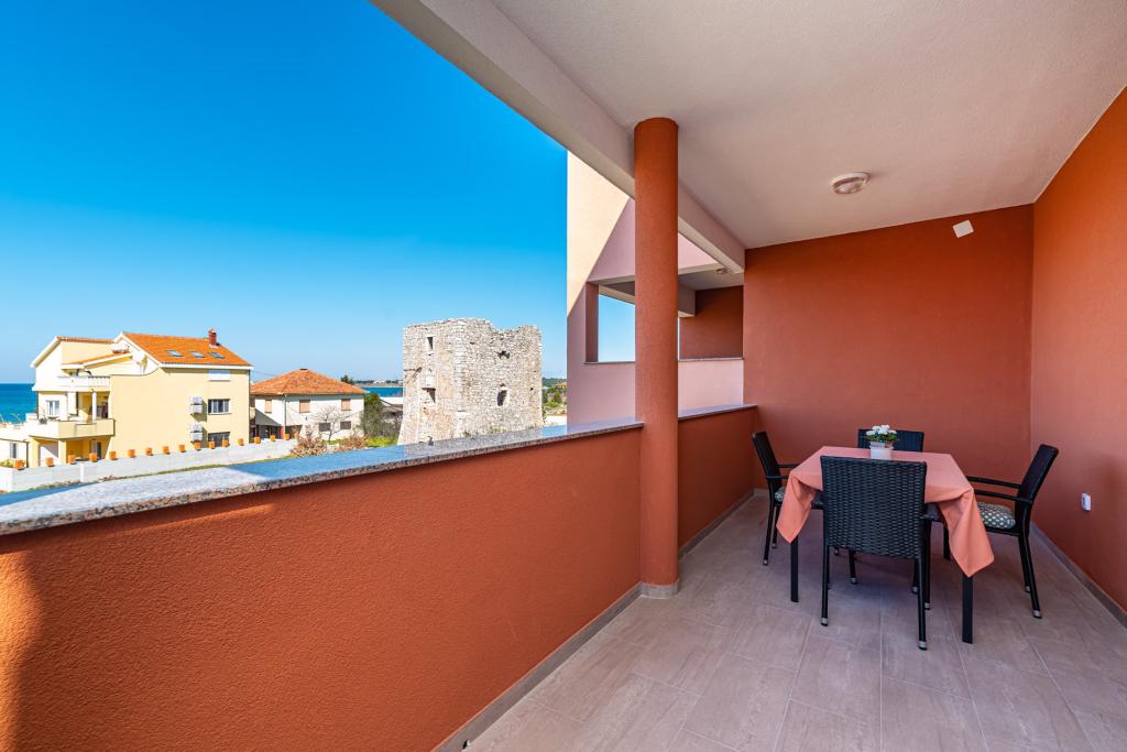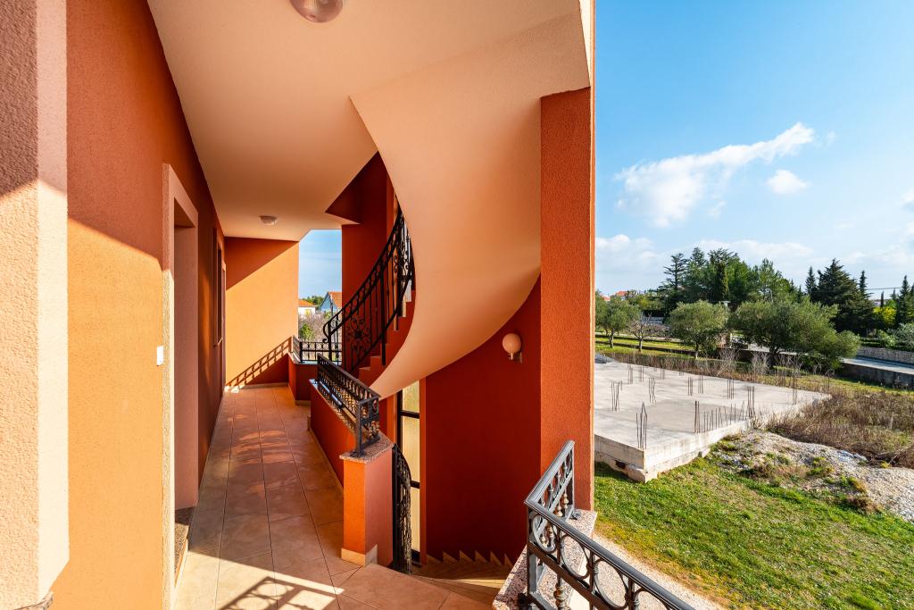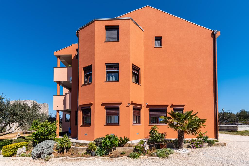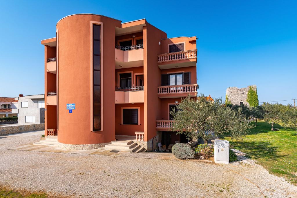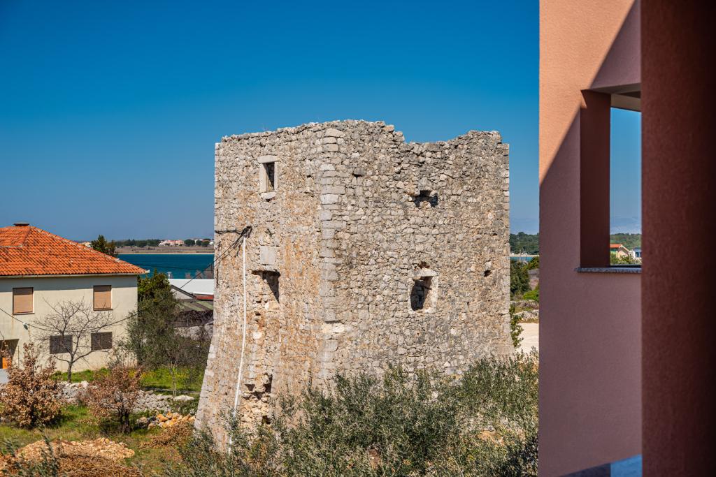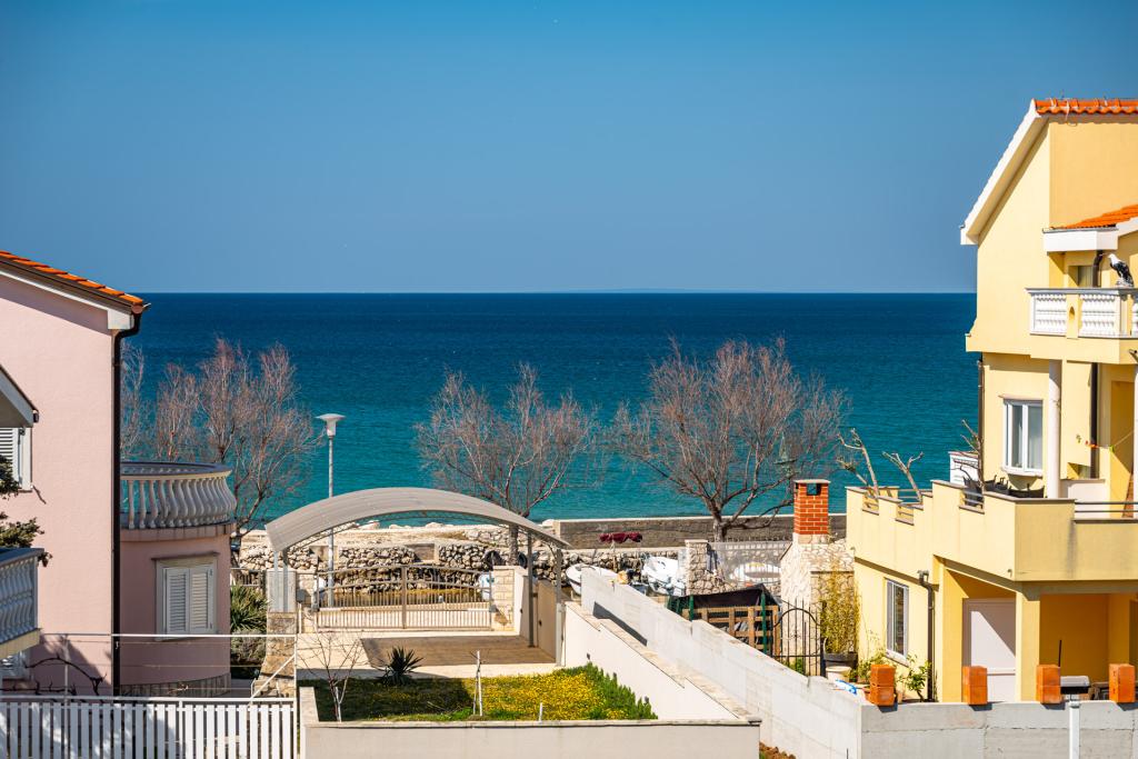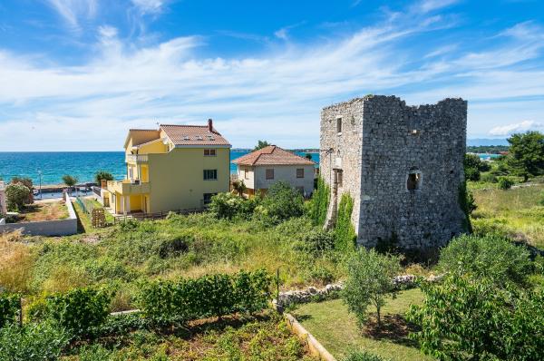 Apartamenty położone są w odległości 50 metrów od morza, w turystycznej miejscowości Zaton z pięknym widokiem na morze. Na parkingu, na zewnątrz grill i huśtawki dla dzieci oraz przestronny dziedziniec.