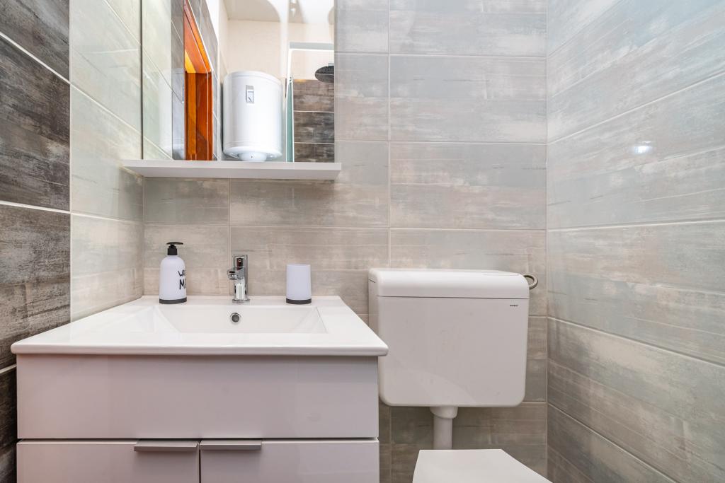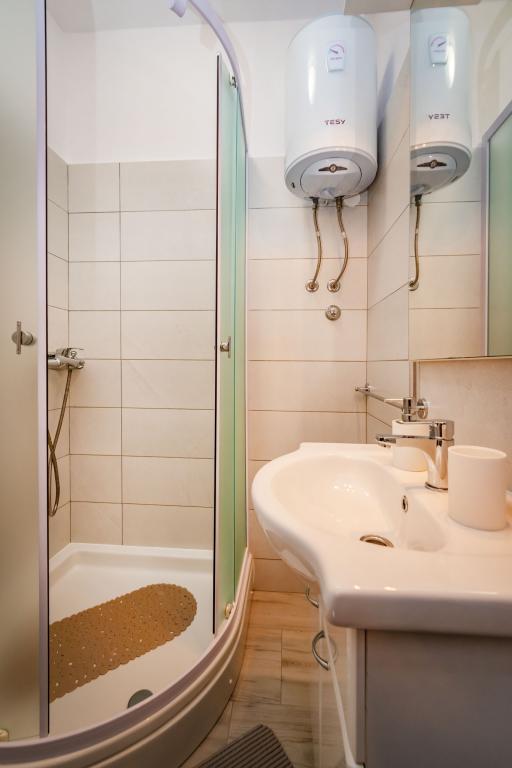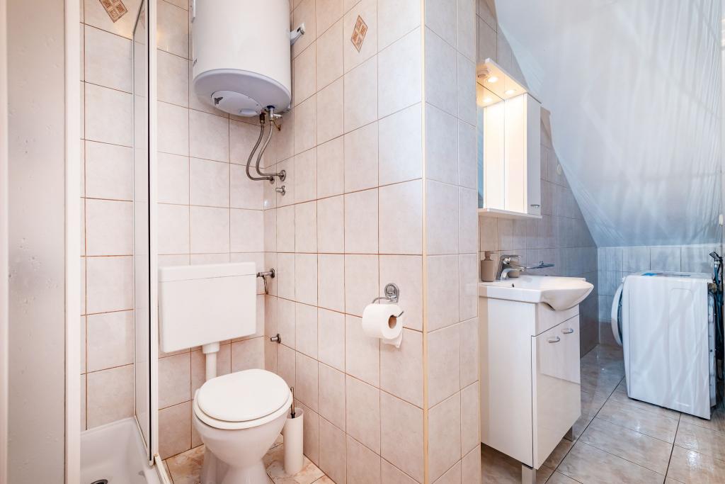 Rekomendacja dla Pani Mirjana i jej zakwaterowanie. Spędziliśmy z mężem 7 cudownych dni. Pani dyskretna, bardzo delikatna i uczynna, prawdziwa gospodyni. Zakwaterowanie w w pełni wyposażonym studiu było doskonałe, wszystko było schludne i czyste. Gospodyni częstowała nas swoimi pomidorami i ogórkami z własnej uprawy (wydaje się, że było jej żal naszego losu, bo w naszym domu to, czego nie zniszczyły intruzi i słońce, zniszczył niedawny lód). Wystarczająco dużo miejsca na parking. Pięknie urządzone podwórko. Najbliższa plaża jest dosłownie kilka kroków od domu. Plaża jest schludna, zewnętrzna część jest betonowa, a w morzu jest piasek. Istnieją również 2 prysznice z ciepłą wodą. Sklepy, restauracje, kościół... wszędzie jest blisko. Samochód w ogóle nie był nam potrzebny. Zapaliliśmy go tylko wtedy, gdy udaliśmy się na koncert do Vir i Aquaparku w Biogradzie.