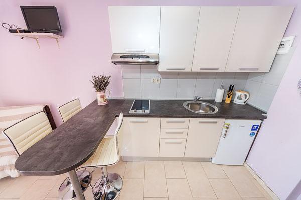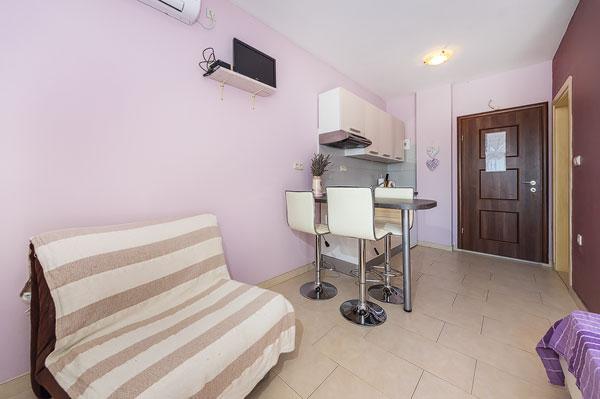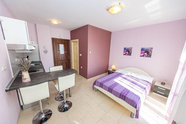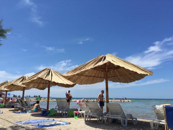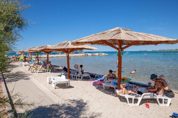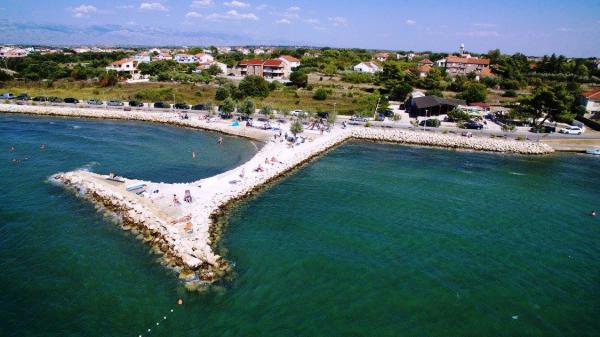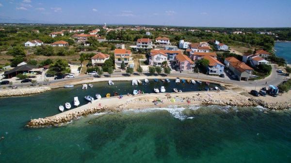 Apartamenty znajdują się 150 metrów od morza i plaży Porat oraz 300 m od piaszczystej plaży Pliša i są w idealnej lokalizacji, jeśli masz małe dzieci, niektóre apartamenty mają widok na morze z tarasu. Są otoczone dużym podwórzem i parkingiem dla Twojego samochodu. Apartamenty są w pełni wyposażone, klimatyzowane z telewizją satelitarną i siecią WIFI, która jest wliczona w cenę wynajmu, a także sprzątanie końcowe. W apartamentach dostępna jest czysta pościel i ręczniki do twarzy. Znajdują się one 20 minut spacerem od ośrodka Zaton Holiday Resort i można tam korzystać z kortów tenisowych, minigolfa, jazdy konnej i wszystkich sportów wodnych. Jesteśmy także 5 minut jazdy samochodem od starego chorwackiego historycznego miasta Nin.